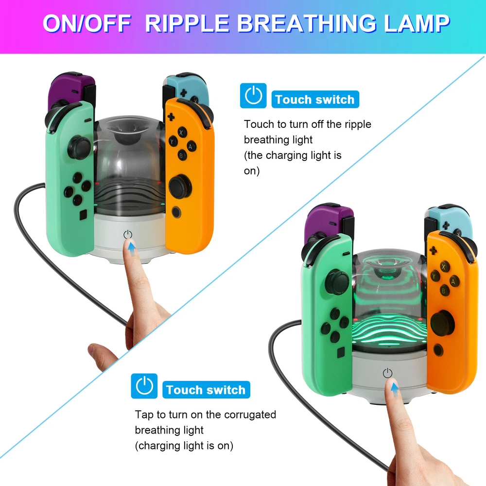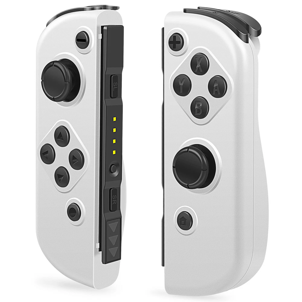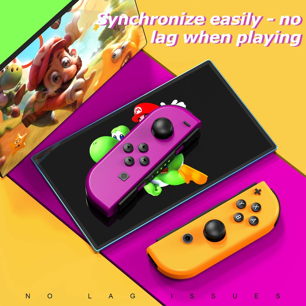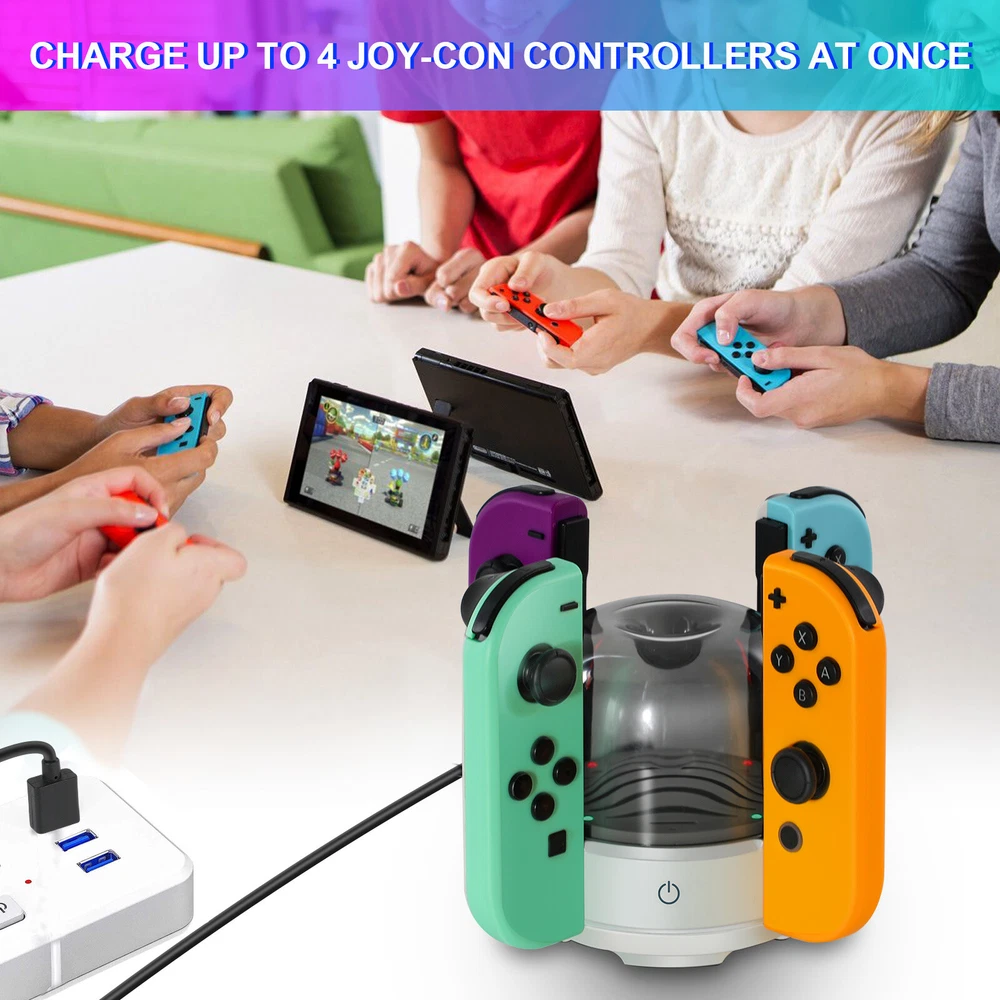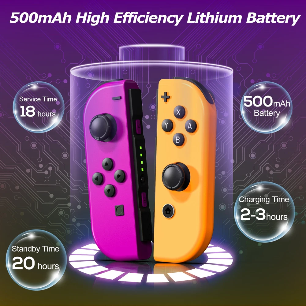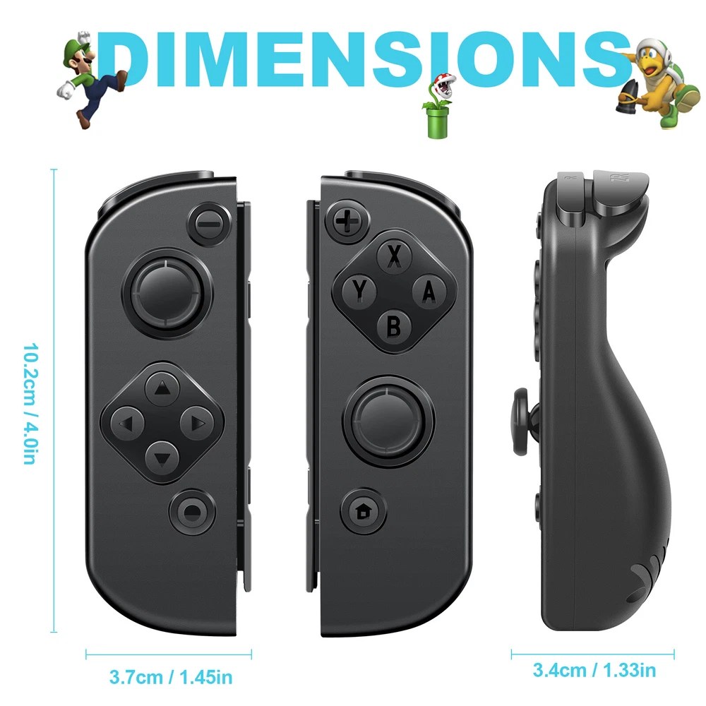 Multicolor For Nintendo Switch Wireless Controllers for Joycon Gamepad w/ Straps Pair Wireless Controller for Nintendo Switch for Switch Nintendo, Replacement for Nintendo Switch Controller, Compatible with Switch Controllers, Wireless Left and Right for Switch Nintendo, for Nintendo Switch Support Dual Vibration/ Wake-up/ Motion Control/ Screenshot 【Upgraded for Switch Nintendo】 The upgraded wireless left and right controller can replace For Nintendo switch controller, and fully compatible for Nintendo Switch/Lite/OLED console. High-performance wireless technology provides strong anti-interference and reliable signal, perfectly solves the problem of frequent dropouts and button unresponsiveness without latency and drift, providing you with smooth and enjoyable game time, Ideal replacement for switch controllers. 【Powerful Features & Real Gaming Experience】 As a replacement for Nintendo switch controller, controllers has 6-Axis gyro somatosensory and dual-motor vibration function excellent motion control and hand vibration shock response to provide real and stimulated gaming experience. Share your game with your friends through the screenshot function. When it is in sleep mode, press and hold the home button of the controllers for 1s~2s to wake up it. 【Easy to Use & Continuous Electricity】 The controllers is paired in the same way as the Nintendo switch controller, simply plug in the controller to use without any drivers. The left and right controllers can be used as a whole controller or as two independent controllers for switch. The single joypad controller has a built-in 500mAh lithium battery with a 2-3hour charge time and up to 18hours of use when fully charged, via a switch console or charging cradle. 【High Price–Performance Ratio】 The controllers is made of scratch-resistant, non-slip and durable high quality ABS material that ensures no fading. Each controller is equipped with a high-precision 360° joystick and a full set of buttons. After technical upgrades, the button life (number of presses) has reached the highest level in the industry, ensuring the long-lasting use of the controller, the skin-friendly rubber material significantly reduces finger fatigue during prolonged use. 【 Warm Tips & Services 】 Package includes: Left Controller * 1, Right Controller * 1 OR Left Controller * 1, Right Controller * 1 , Wirst Strap * 1 Wireless Pro Controller Gamepad Joypad Remote Joystick for Nintendo Switch/Switch Lite/Switch oled(Black) Features: [Flexible & Fluid Movement] The 360 Degree Rotatable Joysticks give you more control of how slowly you can move around or how aggressively you’re steering. 360 degree movement in games like dark souls and first person shooters provide you with a full range of movement in all possible directions [Dual Vibration Feedback] Asymmetric vibrating motor brings you different levels of vibration, including headshots, explosion, and collision, like you are right there in the battlefield. [Layout] The controller offers two analog sticks, a D-pad, 4 main action buttons on the face (A,B,X,Y), start, back, TURBO button, two shoulder triggers, and two smaller shoulder bumpers [Long Battery Life] The wireless game controller is rated for about 6- 8 hours of continuous play. If you do run low, simply plug the controller to power supply without needing to replace the battery [Wide Compatibility] 2.4G Wireless Game Controller works with PC running Windows XP/7/8/8.1/10, PS3 and Android 4.0 or above phone supporting OTG and tablet. iPhone and Mac computer are not supported. [Comfortable Gameplay for Long Sessions] Textured grip not only makes it more pleasant to hold the controller, but it is also much more stable in your hands New trouble shoot steps: Does not provide smooth action in the game.single interrupt 1. Plug the wireless receiver into another free USB 2.0 port 2. Press HOME Button for 5 seconds to force it to connect. 3. Move other wireless devices far away to reduce interference, such as Wifi router (Change a channel if the router is hard to move away) TURBO function: 1. The action keys include (A/B/X/Y/L/ZL/R/ZR) 8 keys, all of which can manually set the TURBO function; 2. Manual burst setting: Press one or several action keys at will, and then tap the TURBO button to turn on the manual burst function; 3. Automatic burst setting: Press the action button that has turned on the burst function again, and press the TURBO button again to turn on the automatic burst function; 4. Press and hold any action key for the third time and press the TURBO key to clear the burst function of this key; 5. Press "-" and the cross key "Down" at the same time to clear all burst functions 5V 2.6A Charger Material: ABS Input Power : 100-240V AC Output Power: 5V 2.6A Power: 12W / Frequency: 50/60HZ USB Interface: Type-C plug Plug Style: US Plug Fit for: For Nintendo Switch, Other Type-C tip product Will not work for the Nintendo Switch Dock and TV mode 4in1 Controller LED Light Charger Dock 7 Colors LED Switch Joy-Con Charging Station for Nintendo Switch/Switch OLED, Switch Controller Charger Dock Switch Joy-Con Charging Stand with LED Indicator Feature: 【4-IN-1 Charger】:This Switch Joy-Con Charging Dock designed for Nintendo Switch/Switch OLED. Available to charge 4 Joy-Con Controllers simultaneously, save time and increase efficiency. (Joycon Controllers NOT Included) 【Security Protection】:The Switch Joy-Con charging station built-in protection chip is with over-charge, over-voltage, over-Current, over circuit protection functions, more reliable and safer. 【Easy to Use】:Easy slide in design allows each controller JoyCon to be easily attached to the Switch charger. The corresonding LED indicator turn red when charging, and turn green when fully charged/standby. 【7 Colors LED】: This Joycon charger stand has individual transparent light bar, which can show beautiful effect of 7 different colors of light by touching the switch on. 【Sav