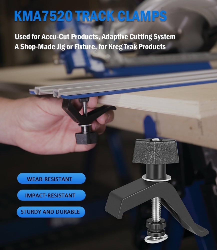 For Kreg Track Clamps Fit Accu-Cut Saw Guide Clamp Trak Mini Trak KMA7520 2PCS Versatile Track Clamps: Track Clamps fit for Accu-Cut family of products and the Adaptive Cutting System. The Track Clamps are handy for creating shop-built jigs and fixtures by sliding them onto the underside of the track where additional holding power may be needed. Track Clamps are also fit for Kreg products. (such as Clamp Trak, Universal Clamp Trak Kits, and Mini Trak.) Clamps for Woodworking: These easy-to-use track clamps lock into place on the underside of the track extensions and Starting Block to offer additional holding power when needed—such as when working with slick-surfaced sheet goods, or when cutting with a single length of track. Features: KMA7520 Track Clamps Work for Kreg multiple kinds of tracks,Track Clamps are great for making shop fixtures. Kit Includes: (2) Clamp Bodies, (2) Mounting Bolts with washers, (2) Threaded Knobs, (2) Knurled Locking Nuts. Satisfaction Guarantee: If you're not satisfied with the tool, simply return it for a full refund in 60 days.If you have any questions, please feel free to contact us and we will reply you as soon as we can. 1. Payment methods accepted: Payoneer. Our payoneer account allows you to pay by credit card, debit card and your paypal balance. 1. We ship items to Your ebay address.Please make sure your ebay address is correct before you pay, cause it cannot be changed once the order shipped out. 2. All of our items are shipped from our Warehouse in USA. 3. Please feel free to contact us by ebay "Contact member" if you cannot get your order on time. 1. Return to us within 60 days from the delivery date for exchange or refund. Refund will be given as Money back or item exchange (buyer's choice). 2. Return shipping fee is the responsibility of buyer unless the return is a result of our mistake. And all NON-seller mistake returns for refund are subject to 20% re-stocking fee. 3. If you need return, please contact our customer service representative, let us know the detailed problem and send us some pictures for confirmation. 1.Please contact us via ebay using"Contact member". We will respond within 24hours or less.Thank you for your understanding. 2. We maintain high standards of excellence 5-stars and strive for 100% customer satisfaction! Positive Feedback is very important to us. 3. Pls contact us first before you leave Neutral or Negative feedback. We will do our best to solve the problem, thanks!