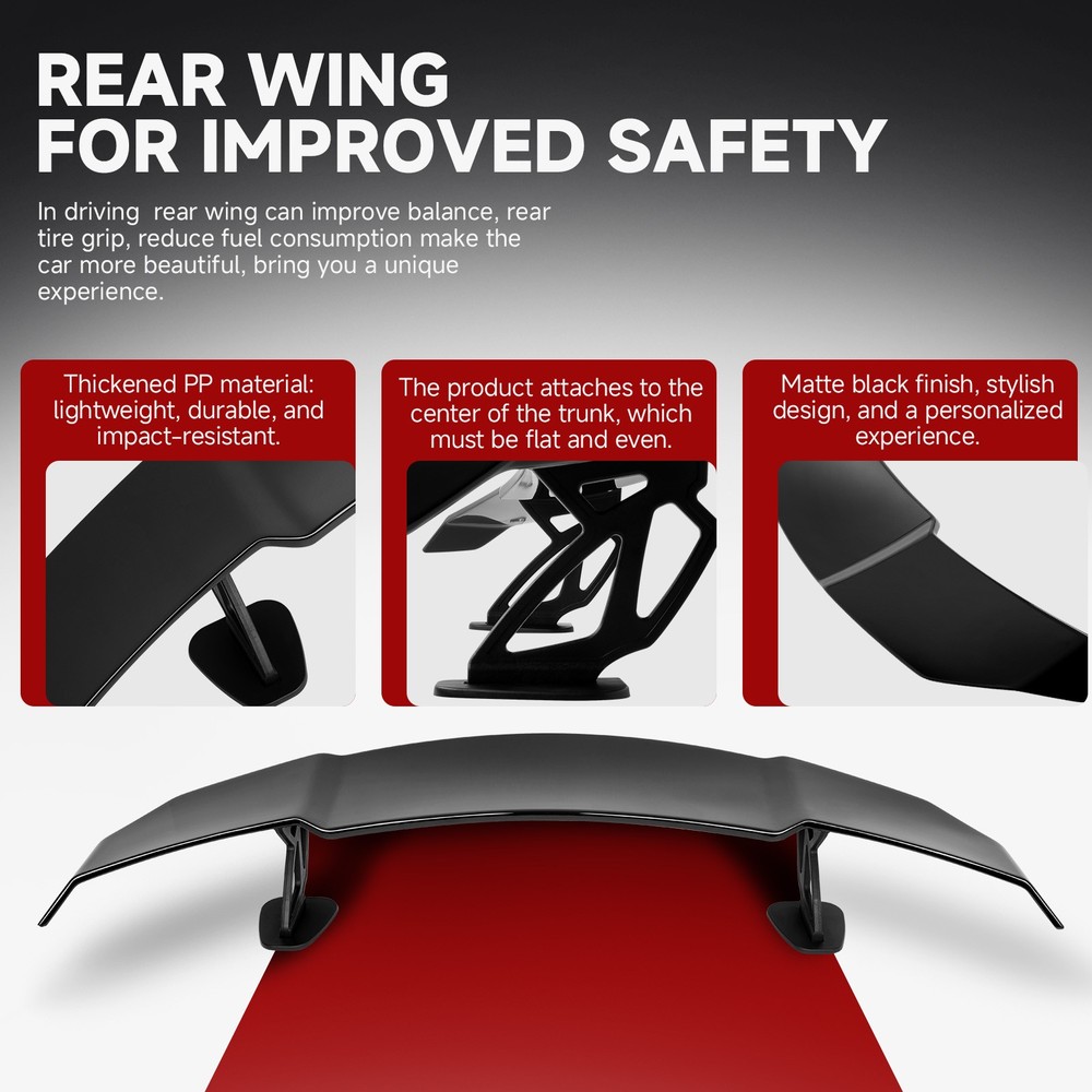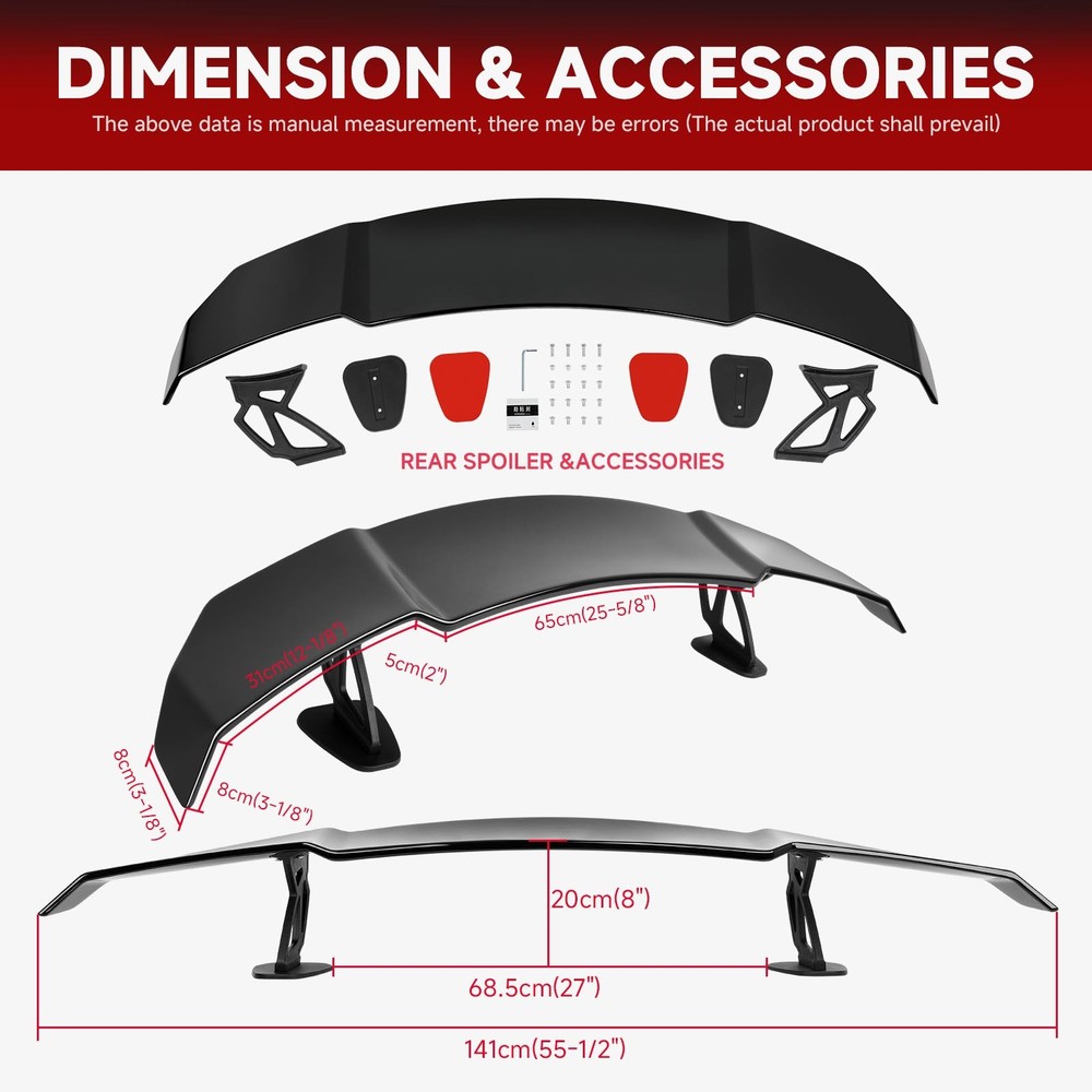 For Lamborghini Aventador 55" Rear Boot Trunk GT Style Racing Spoiler Tail Wing Specification Type: GT Rear Spoiler Wing Color: Black Spoiler length: 55" Material: ABS Plastic Feature ใ๐๐ฎ๐ซ๐๐๐ฅ๐ ๐๐๐ญ๐๐ซ๐ข๐๐ฅใ- DREAMOTOR rear spoiler wing for car is made of high-quality strong ABS plastic which has excellent impact resistance, heat resistance, and low-temperature resistance. Streamlined and lightweight design with low noise. ใ๐๐ญ๐ฎ๐ง๐ง๐ข๐ง๐ & ๐๐ฉ๐จ๐ซ๐ญ๐ฒ ๐๐จ๐จ๐คใ- Our rear spoiler wing has extremely attractive appearance and fluent curve design, which give your car performance aesthetic, to improve your car styling. ใ๐๐ฎ๐ญ๐ฌ๐ญ๐๐ง๐๐ข๐ง๐ ๐๐๐ซ๐๐จ๐ซ๐ฆ๐๐ง๐๐ใ- The rear spoiler of the car can effectively reduce and overcome the influence of air resistance when the car is driving at high speed, and generate adhesion to the ground, it adds more down-force and helps aerodynamic of your vehicle, to effectively maintain the stability of your coupe at high speeds. ใ๐๐ฎ๐ข๐๐ค ๐๐ง๐ฌ๐ญ๐๐ฅ๐ฅ๐๐ญ๐ข๐จ๐งใ- You can drill holes in the trunk and then install the screws or use with strong adhesive tape . The screws are fixed to ensure the safety of the car while driving and will not affect the opening of the trunk. Package Included 1 x Rear Spoiler Wing 2 x Aluminum Foot Bars 1 x Set of Mounting screws and brackets โขWe accepted Online Payment ONLY โขWe will ship your order within 24 hours after receiving your verified payment (Excluding Weekends and Public Holidays) โขThe estimated delivery time is within 3-7 working days(not including the weekend). โขUnited States:3-5 working days(not including the weekend) โขIf you fail to receive over 7 days, please contact us and we will try our best to help โขReturn items must not be used or have any sign of abuse or intentional damage. โขBuyer is responsible for all return shipping charges. โขWe reserve the right not to refund S&H when the item has been posted. We are a company run business with more than 10 years experience in whole sale of quality Motorcycle And Car Parts & Accessories Specification Type: GT Rear Spoiler Wing Color: Black Spoiler length: 55" Material: ABS Plastic Feature ใ๐๐ฎ๐ซ๐๐๐ฅ๐ ๐๐๐ญ๐๐ซ๐ข๐๐ฅใ- DREAMOTOR rear spoiler wing for car is made of high-quality strong ABS plastic which has excellent impact resistance, heat resistance, and low-temperature resistance. Streamlined and lightweight design with low noise. ใ๐๐ญ๐ฎ๐ง๐ง๐ข๐ง๐ & ๐๐ฉ๐จ๐ซ๐ญ๐ฒ ๐๐จ๐จ๐คใ- Our rear spoiler wing has extremely attractive appearance and fluent curve design, which give your car performance aesthetic, to improve your car styling. ใ๐๐ฎ๐ญ๐ฌ๐ญ๐๐ง๐๐ข๐ง๐ ๐๐๐ซ๐๐จ๐ซ๐ฆ๐๐ง๐๐ใ- The rear spoiler of the car can effectively reduce and overcome the influence of air resistance when the car is driving at high speed, and generate adhesion to the ground, it adds more down-force and helps aerodynamic of your vehicle, to effectively maintain the stability of your coupe at high speeds. ใ๐๐ฎ๐ข๐๐ค ๐๐ง๐ฌ๐ญ๐๐ฅ๐ฅ๐๐ญ๐ข๐จ๐งใ- You can drill holes in the trunk and then install the screws or use with strong adhesive tape . The screws are fixed to ensure the safety of the car while driving and will not affect the opening of the trunk. Package Included 1 x Rear Spoiler Wing 2 x Aluminum Foot Bars 1 x Set of Mounting screws and brackets PAYMENT โขWe accepted Online Payment ONLY SHIPPING โขWe will ship your order within 24 hours after receiving your verified payment (Excluding Weekends and Public Holidays) โขThe estimated delivery time is within 3-7 working days(not including the weekend). โขUnited States:3-5 working days(not including the weekend) โขIf you fail to receive over 7 days, please contact us and we will try our best to help Terms of Sale โขReturn items must not be used or have any sign of abuse or intentional damage. โขBuyer is responsible for all return shipping charges. โขWe reserve the right not to refund S&H when the item has been posted. ABOUT US We are a company run business with more than 10 years experience in whole sale of quality Motorcycle And Car Parts & Accessories On Aug 21, 2025 at 17:44:38 PDT, seller added the following information: