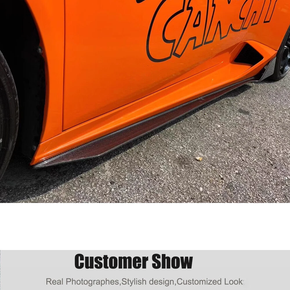Features: 1.Fit For Lamborghini Huracan 2014-2017 2.Made of light weight & top-grade durable 3K carbon fiber material with polished and shinning surface, UV-Protected Clear Coating, make your car more luxurious 3.Make the vehicle look like a more performance car, it adds more down force and helps aerodynamic, dramatically improve styling & appearance 4. Maintain the stability of the vehicle when in high speeds, reducing wind resistance, saving fuel and keeping safety 5. Easy installation, Self-adhesive glue tape & self-tapping screws included,Excellent fitment 6.Embedded packaging, damp-proof, shockproof & crashproof Specification: Color: Carbon Fiber Black Material: Carbon Fiber Process: Vacuum molding Pattern: 3X3 twill weaven Packaging: Carton box Installation: Free glue tape & screws For Lamborghini Huracan 2014-2019 Real Carbon Side Skirts Extension Lip Spoiler Features: 1.Fit For Lamborghini Huracan 2014-2017 2.Made of light weight & top-grade durable 3K carbon fiber material with polished and shinning surface, UV-Protected Clear Coating, make your car more luxurious 3.Make the vehicle look like a more performance car, it adds more down force and helps aerodynamic, dramatically improve styling & appearance 4. Maintain the stability of the vehicle when in high speeds, reducing wind resistance, saving fuel and keeping safety 5. Easy installation, Self-adhesive glue tape & self-tapping screws included,Excellent fitment 6.Embedded packaging, damp-proof, shockproof & crashproof Specification: Color: Carbon Fiber Black Material: Carbon Fiber Process: Vacuum molding Pattern: 3X3 twill weaven Packaging: Carton box Installation: Free glue tape & screws included Package Included: 2PCS Carbon Fiber Side Skirts, Self-Tapping Screws About Payment and tax About Return policy About shipping About us Contact us About Payment and tax 1. We ship to your eBay address.Please make sure your eBay address is correct before you pay. 2. Multiple Payment Methods Available: Credit Card, Debit Card, Gift Card, Apple Pay, Goggle Pay, PayPal and PayPal Credit 3.Your must complete the payment within 8 days or Ebay will automatically open unpaid item case For US Buyer: The invoice value of each item is less than 800USD ,so you no need to pay any tariff . NON-US Buyer Note: Most countries are tax free based on our invoices, if tax is required, which will be buyer's responsibility. About Return policy 1.Customer satisfaction is our top goal. We believe our items are so outstanding. All products are quality checked. They are new and in good condition when shipped to our customers. We are convinced you will be happy with your Purchase. 2.If product is defective or damage upon arrival, or wrong product shipped, please contact us immediately. Returns accepted within 30 days of delivery date and item must be in original new condition, not worn or altered in any way with attached tags & wrap. Otherwise deal is final. Return shipping must be paid by buyer. 3.Please contact us first if you have any problems/questions/concerns. We will be happy to resolve any issues you may have in a cordial and friendly manner. 4.We offer refund or exchange within 30 days after buyer received damaged, incorrect or defective item. Please always contact us to resolve any problems, we will do our best to satisfy you. Thanks very much. About shipping The shipping fee is only for the mainland of each country,it does not include the overseas territories,such as Virgin Islands (U.S.) , Puerto Rico, French Reunion Island, etc .But on ebay,when buyers from Puerto Rico, the shipping fee is equal to United States, it is NOT correct,please contact us for correct shipping fee, or we will cancel the order.Sorry for the inconvenience,and thanks for your cooperation. 1. Please contact us if we have not specified the shipping fee to your country. 2. Package will be shipped from China,usually it will be delivered in 3-15 business days to most countries. 3. If you want to upgrade the shipping,please contact us before making payment,we will revise the shipping fee. About us 1.Powerful professional factory to ensure to provide best quality Products. We are specilized in designing,developing and producing carbon fiber,PU,FRP car body parts, and interior and exterior trims for Germany & American & luxury super cars. 2.We sell them directly to ensure give you best price at best quality.We have distributors from all over the world,Europe,US,Middle East,South Afria etc... 3.Our company is one of the earliest and leading auto parts manufacturer in China,established in 2002. We had more than 15 years of experience in overseas business. Contact us 1.We are trying our best to explain all details of the products here! If you have any question, please feel free to contact us by Ebay message, and We will get back to you within 24-48 hours. 2. Customer satisfaction is our NO.1 priority. If you are not happy with the item that you purchase, please contact us first. We will try our best to solve the problem with you. Please leave us a positive feedback if you receive the item. Please do not leave negative or neutral feedback without any contact.If you haven't received item in 30 days, please contact us . We appreciate your business. Happy Bidding & Have a nice day! 3.Working hours: From 8 a.m. to 6 p.m. from Monday to Friday. From 8 a.m. to 12 a.m. on Saturday morning Rest time: Saturday afternoon and Sunday