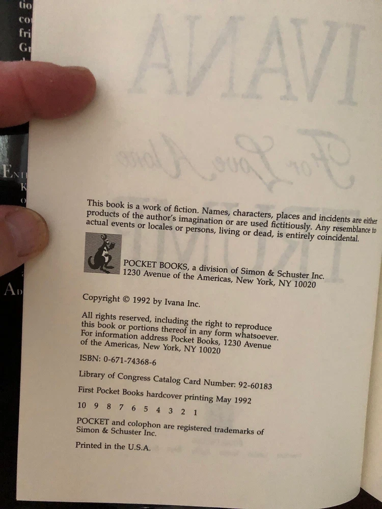 For Love Alone by Ivana Trump 1992 Signed HC DJ