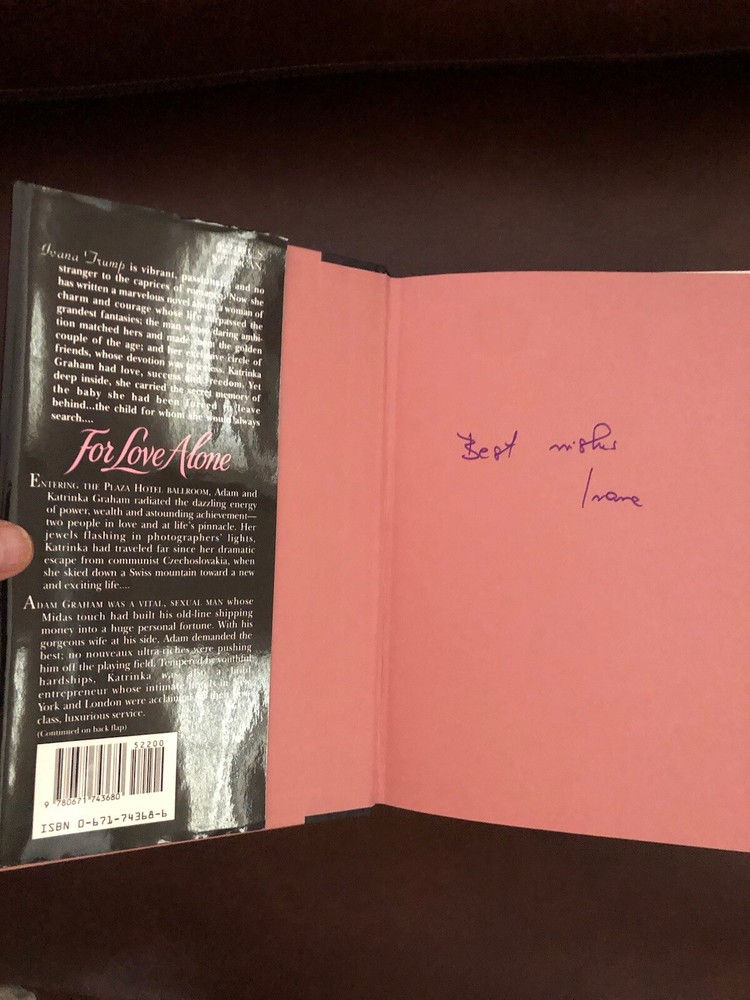 Publisher: Atria Books Type: Novel Original Language: English Topic: General Format: Hardcover Narrative Type: Fiction Book Title: For Love Alone ISBN: 9780671743680 Features: Dust Jacket Author: Ivana Trump Language: English Genre: Fiction Signed: Yes Country of Origin: United States Edition: First Edition Publication Year: 1992 Item Weight: 18.3 Oz Inscribed: Yes gtin13: 9780671743680 Personalized: Yes