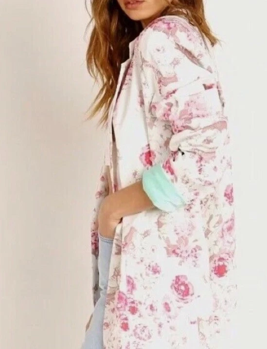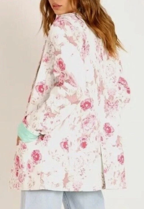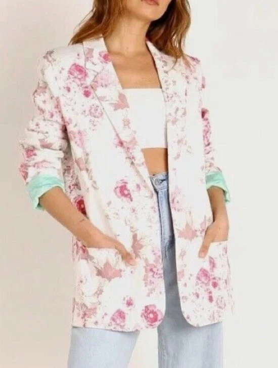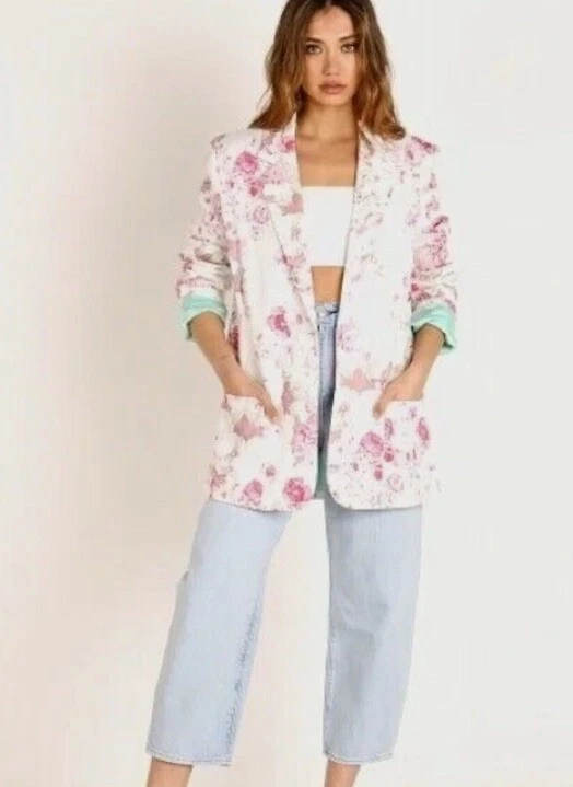 Add a pop of color to your wardrobe with this beautiful blue floral denim blazer from For Love and Lemons. This blazer features a stretchy fabric that ensures a comfortable fit, making it perfect for any occasion. The oversized size XS fits more like a medium, making it a versatile addition to any wardrobe. The blazer is made with high-quality cotton denim material that is both durable and stylish. The colorful floral pattern adds a touch of elegance to the blazer, making it perfect for any formal or semi-formal occasion. The blazer also features a basic jacket style and a denim fabric type that adds a unique and trendy touch to your outfit.