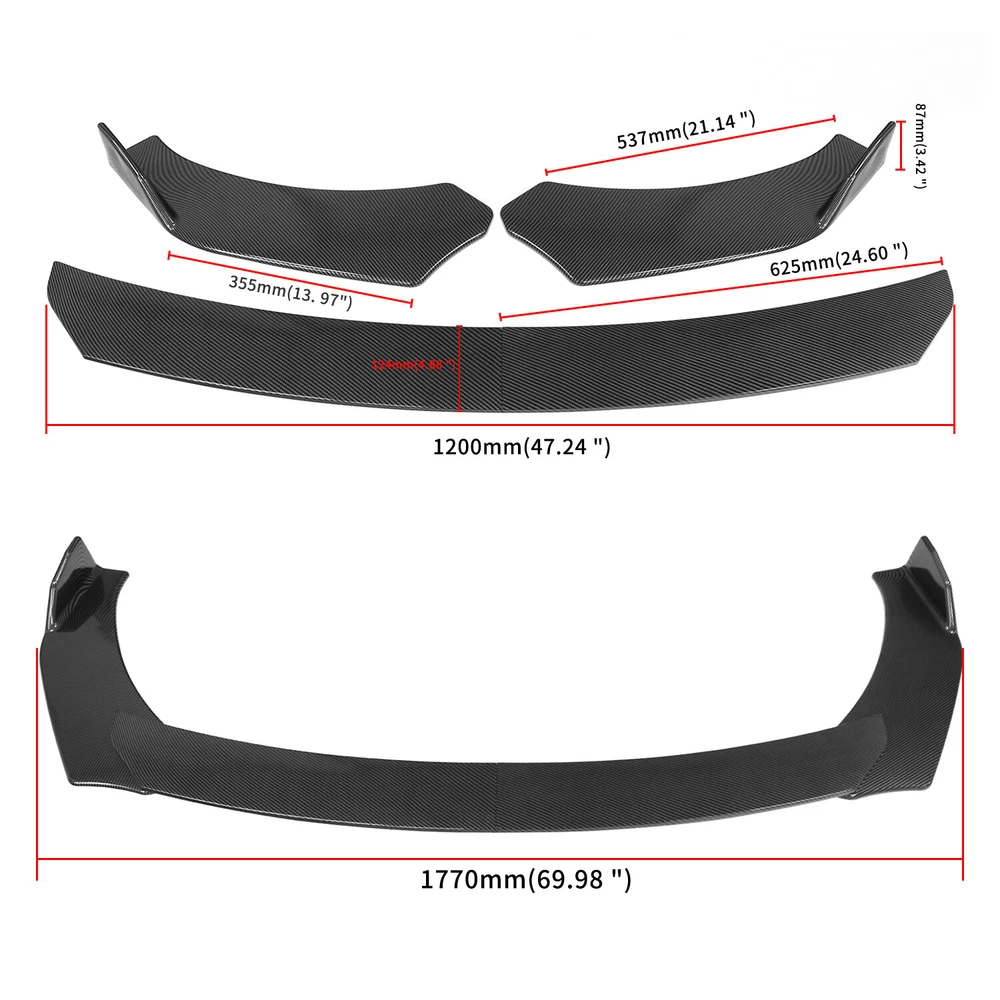 Front Bumper Lip Specification: -Type:Front Lip Chin Bumper Body Kits -Material:ABS -Color:Carbon Fiber -Weight:1768g -Placement on Vehicle:Front;;Lower -Fitment Type:Performance/Custom Feature: -Direct Fit. -Easy install and durable use. -Great quality and great Fitment. -Correct Connector No cutting or splicing. -Strict quality control standards to Build and test. -It'll give you a sporty look without making it too aggressive. -Light in weight and enduring, different optical line comes from different points of view. *Instruction Not Included, Professional Installation Is Highly Recommended.* Strut Rods ★ Length: The length can be adjustable from 5.9" to 11" (200-330mm) ★ Material: Stainless Steel ★ Quatity: 2 x Stainless Steel Bumper Lip Splitter Tie Rod Bars. ( Stainless steel has weldability, corrosion resistance and heat resistance.) ★ Position: This exquisite and compact lever is mainly fixed on the body components (front and rear surround, skirt, head and tail lip), and can also be installed in the car center console or interior trim panel ★ Require: Product will require drilling holes into the bumper and/or lip/diffuser to attach safely to the vehicle. Package Included: 1set Front Lip Chin Bumper Body Kits 2 X Strut Splitter Rods On Sep 28, 2024 at 10:13:51 PDT, seller added the following information: On Jan 8, 2025 at 15:47:41 PST, seller added the following information: