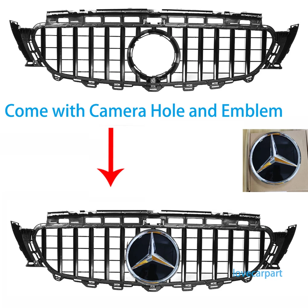 For Mercedes Benz W213 E200 E250 E300 E350 Grill 2016-2020GT R Grille w/Emblem