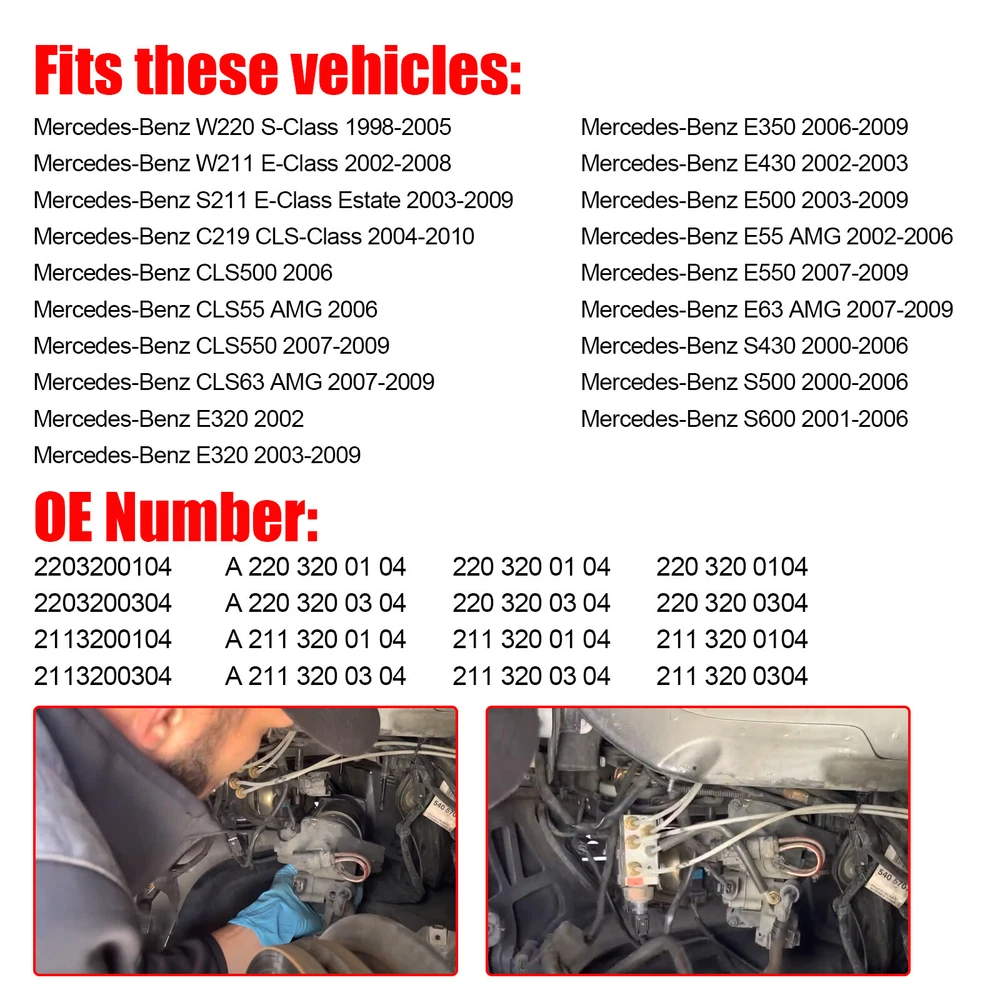 Product Type : Shocks, Struts & Assemblies Color : Silver & Black Fitment : MAYBACH 240 2002- Mercedes-Benz W220 S-Class 1998-2005 Mercedes-Benz W211 E-Class 2002-2008 Mercedes-Benz S211 E-Class Estate 2003-2009 Mercedes-Benz C219 CLS-Class 2004-2010 Mercedes-Benz CLS500 2006 Mercedes-Benz CLS55 AMG 2006 Mercedes-Benz CLS550 2007-2009 Mercedes-Benz CLS63 AMG 2007-2009 Mercedes-Benz E320 2002 Mercedes-Benz E320 2003-2009 Mercedes-Benz E350 2006-2009 Mercedes-Benz E430 2002-2003 Mercedes-Benz E500 2003-2009 Mercedes-Benz E55 AMG 2002-2006 Mercedes-Benz E550 2007-2009 Mercedes-Benz E63 AMG 2007-2009 Mercedes-Benz S430 2000-2006 Mercedes-Benz S500 2000-2006 Mercedes-Benz S600 2001-2006 Part Number : 2203200104, A 220 320 01 04,220 320 01 04, 220 320 0104 2203200304, A 220 320 03 04,220 320 03 04, 220 320 0304 2113200104, A 211 320 01 04,211 320 01 04, 211 320 0104 2113200304, A 211 320 03 04,211 320 03 04, 211 320 0304 2193200004, A 219 320 00 04,219 320 00 04, 219 320 0004 0025427219, A 002 542 72 19,002 542 72 19, 002 542 7219 0025427619, A 002 542 76 19,002 542 76 19, 002 542 7619 0025421319, A0025421319, 002 542 13 19, A 002 542 13 19 0025427219, A0025427219, 002 542 72 19, A 002 542 72 19 0025428019, A0025428019, 002 542 80 19, A 002 542 80 19 1238621 6555VP 6555HJ 7905522230 9673062180 8840103590 4154033030 4154031120 SSP02192N 02.30.149 0230149 Package Content : 1 x Air Suspension Compressor Pump All of our products can be returned within 30 days, Please open a request for any of these reasons: The reason you pick has no impact on your refund amount, but it has a big impact on us as a seller, Choosing other reasons may delay the refund per an internal investigation and potential eBay appeal. You are entitled to send back the product within a 30-day period after receiving it. The returned item should be in its original condition, with all the accessories, literature, and factory carton that came with it. Product Type : Shocks, Struts & Assemblies Color : Silver & Black Fitment : MAYBACH 240 2002- Mercedes-Benz W220 S-Class 1998-2005 Mercedes-Benz W211 E-Class 2002-2008 Mercedes-Benz S211 E-Class Estate 2003-2009 Mercedes-Benz C219 CLS-Class 2004-2010 Mercedes-Benz CLS500 2006 Mercedes-Benz CLS55 AMG 2006 Mercedes-Benz CLS550 2007-2009 Mercedes-Benz CLS63 AMG 2007-2009 Mercedes-Benz E320 2002 Mercedes-Benz E320 2003-2009 Mercedes-Benz E350 2006-2009 Mercedes-Benz E430 2002-2003 Mercedes-Benz E500 2003-2009 Mercedes-Benz E55 AMG 2002-2006 Mercedes-Benz E550 2007-2009 Mercedes-Benz E63 AMG 2007-2009 Mercedes-Benz S430 2000-2006 Mercedes-Benz S500 2000-2006 Mercedes-Benz S600 2001-2006 Part Number : 2203200104, A 220 320 01 04,220 320 01 04, 220 320 0104 2203200304, A 220 320 03 04,220 320 03 04, 220 320 0304 2113200104, A 211 320 01 04,211 320 01 04, 211 320 0104 2113200304, A 211 320 03 04,211 320 03 04, 211 320 0304 2193200004, A 219 320 00 04,219 320 00 04, 219 320 0004 0025427219, A 002 542 72 19,002 542 72 19, 002 542 7219 0025427619, A 002 542 76 19,002 542 76 19, 002 542 7619 0025421319, A0025421319, 002 542 13 19, A 002 542 13 19 0025427219, A0025427219, 002 542 72 19, A 002 542 72 19 0025428019, A0025428019, 002 542 80 19, A 002 542 80 19 1238621 6555VP 6555HJ 7905522230 9673062180 8840103590 4154033030 4154031120 SSP02192N 02.30.149 0230149 Package Content : 1 x Air Suspension Compressor Pump All of our products can be returned within 30 days, Please open a request for any of these reasons: The reason you pick has no impact on your refund amount, but it has a big impact on us as a seller, Choosing other reasons may delay the refund per an internal investigation and potential eBay appeal. You are entitled to send back the product within a 30-day period after receiving it. The returned item should be in its original condition, with all the accessories, literature, and factory carton that came with it. On Oct 29, 2024 at 15:01:42 PDT, seller added the following information: