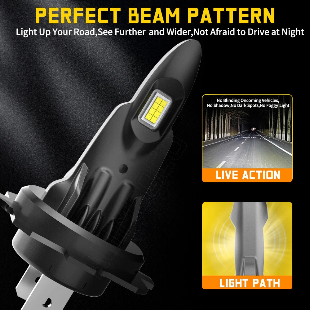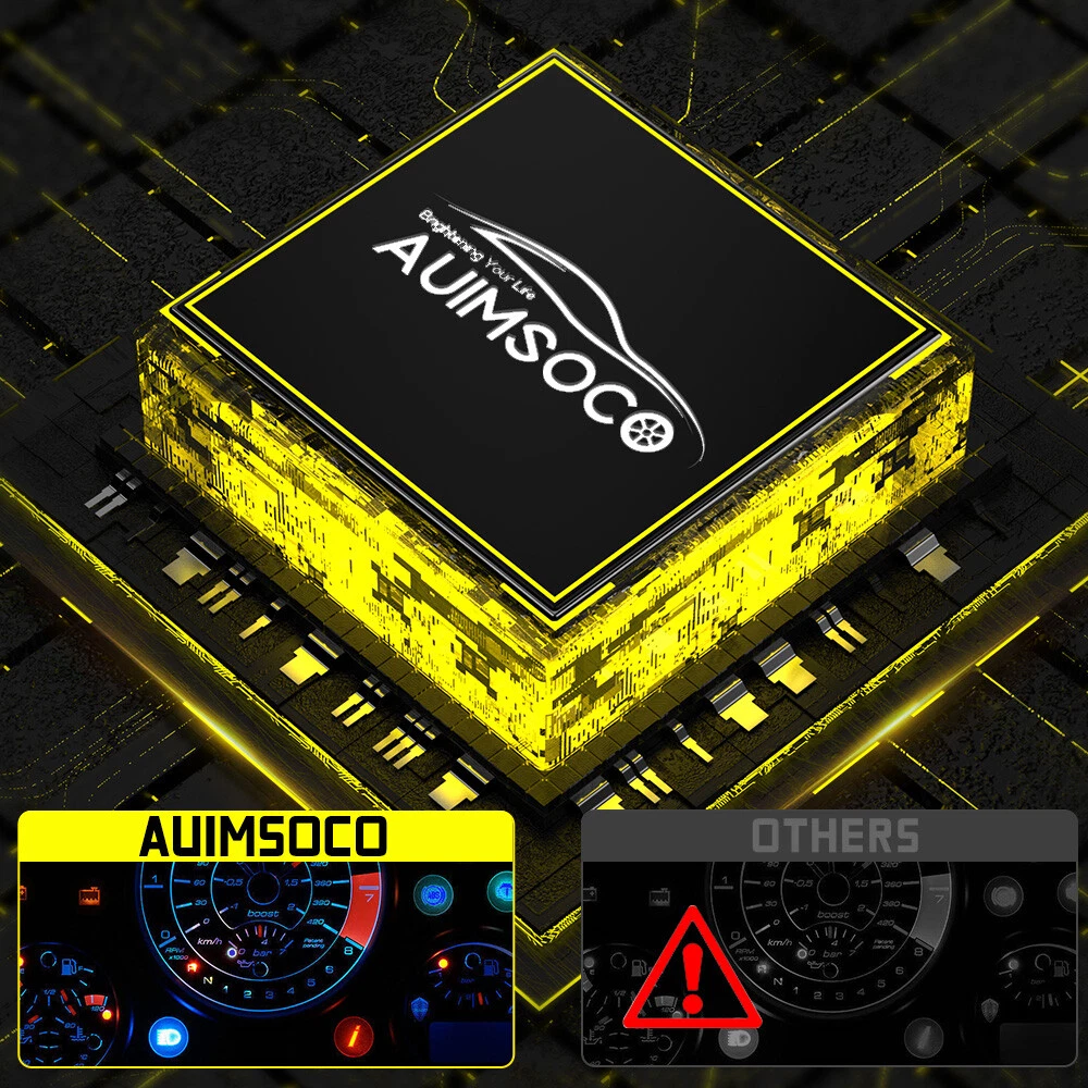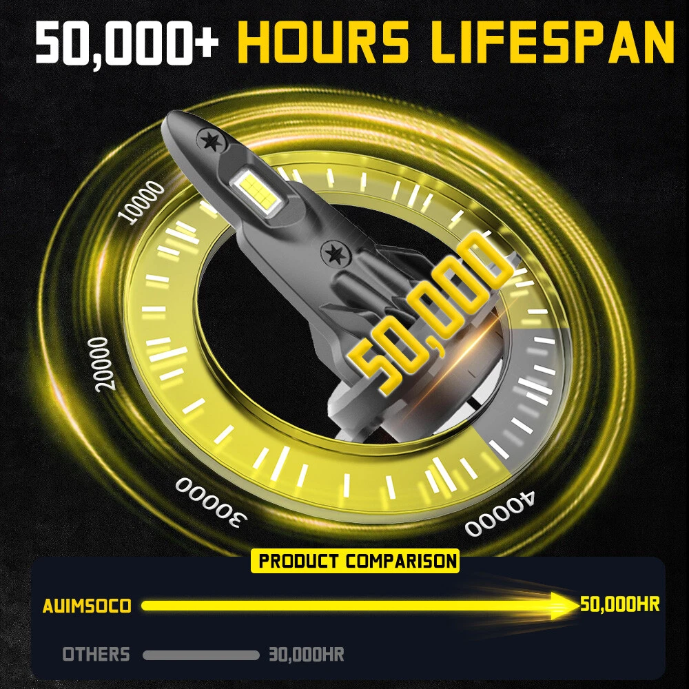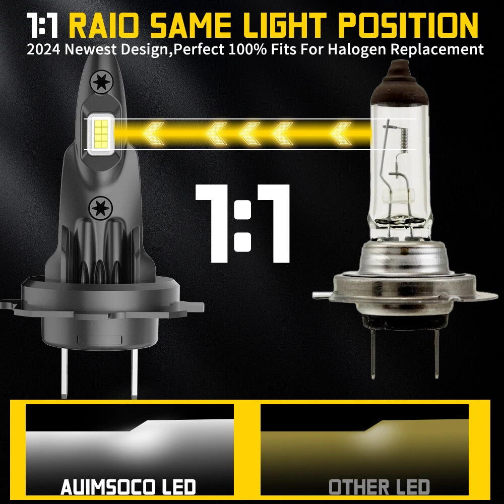 About this item 【Brightness 300%】AUIMSOCO H7 light bulbs uses the latest upgraded version of the chip, 300% brighter than halogen bulbs, 4000LM 6500K Xenon White, higher brightness, you can enjoy a brighter, safer driving process! 【Less than 10 minutes installation time】H7 light bulb with super mini size, no need to worry about the installation space, installation time less than 10 minutes, the real plug and play! 【Gathering and Bright Beam】H7 light bulbs uses upgraded version of the chip. The 16 pcs design makes the light more gathered and bright, no need to worry about traveling at night, the illumination range is wide enough and will not be scattered. Unique bulbs head design, while ensuring safety, but also bring you a different feeling of shopping! 【Ultra-long Life】A52 H7 light bulbs improved the cooling system, the cooling system is more advanced, the upgraded version of the heat dissipation system allows the lights to be used more than 50,000 hours. IP68 waterproof design can ensure your safety on the road in bad weather. 【High Compatibility】Our H7 light bulbs are compatible with most vehicles, the built-in decoder is designed to work with 99% of vehicles, you can also contact us before you buy, we will check it for you. Specifications: Brand: AUIMSOCO Compatible With: H7 H7 9006 Condition: 100%Brand New/ Never Used Lifespan: >50000 hours Lumens: 4000LM Voltage: DC 9-30V Color: 6500K(White Color) Interchange Part Number: Use for Headlight high Beam, Low Beam, Fog Lights Beam Angle: 360 Degrees Placement on Vehicle: Left, Right, Front Heat Control: Aluminum shell base Warranty: 5 years Complete Kit: No Other Ballast/Driver Required Just Plug and Play - Newest Technology Beam Angel: 360 Degrees Operating TemperatureWith or without fan: -40°C ~ +150°C With or without fan: Fanless Features: 1.Each Bulb have 2 sides of Super Bright LED Chips 2.Complete Kit: No Other Ballast/Driver Required Just Plug and Play - Newest Technology 3.Smart Efficient Cooling System, Fast Heat Dissipation 4.High quality Aluminum heat dissipation ensures the secure temperature range 5.Low Power Consumption than Halogen bulb or Hid Kit, Energy Saving 6.Low Voltage Protection, High Precision Constant Current driver Chip Package include: 6x LED Headlight Bulbs H7 (High Beam) + H7 (Low Beam) + 9006 (Fog Light) NOTE: Only fit for Original headlight assembly