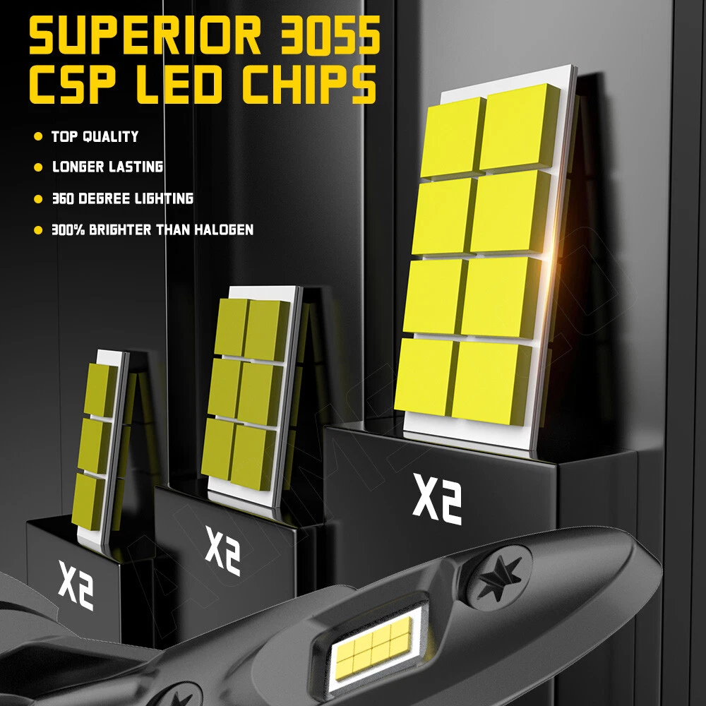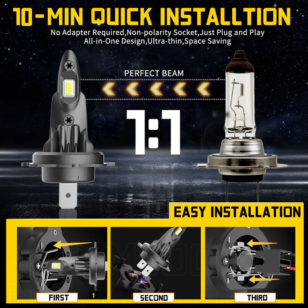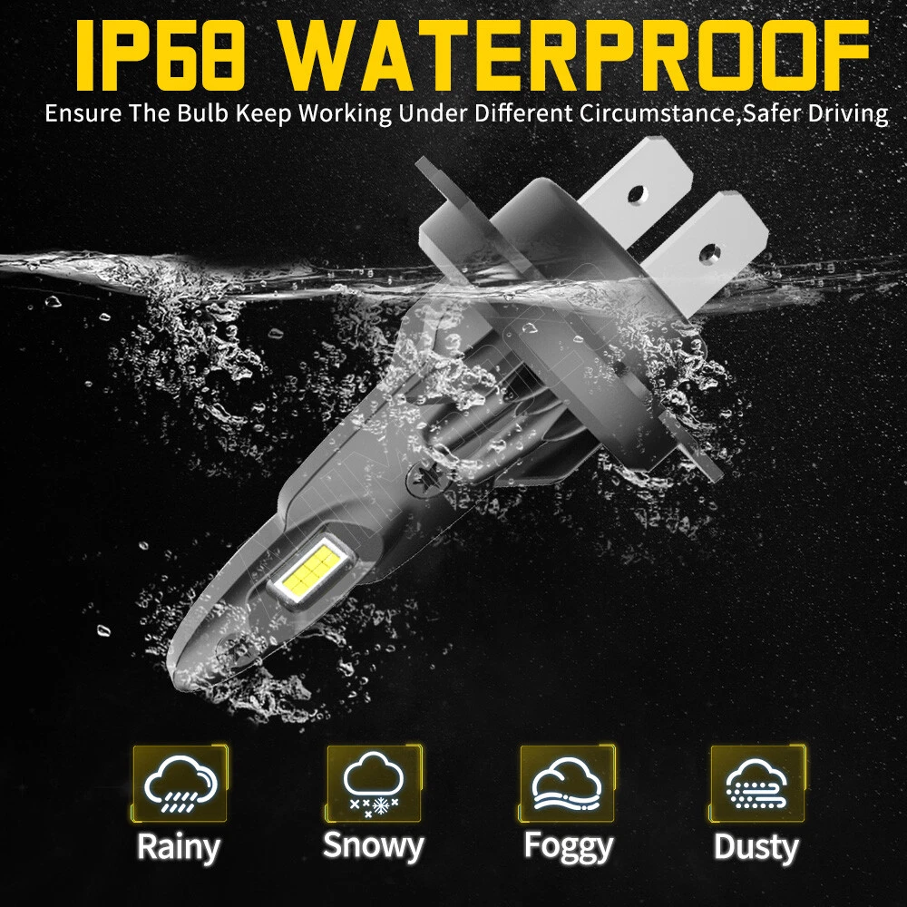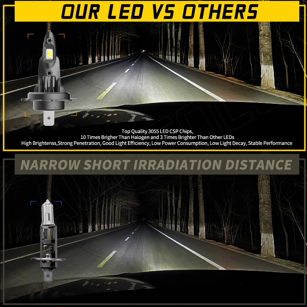 About this item 【Brightness 300%】AUIMSOCO H7 light bulbs uses the latest upgraded version of the chip, 300% brighter than halogen bulbs, 4000LM 6500K Xenon White, higher brightness, you can enjoy a brighter, safer driving process! 【Less than 10 minutes installation time】H7 light bulb with super mini size, no need to worry about the installation space, installation time less than 10 minutes, the real plug and play! 【Gathering and Bright Beam】H7 light bulbs uses upgraded version of the chip. The 16 pcs design makes the light more gathered and bright, no need to worry about traveling at night, the illumination range is wide enough and will not be scattered. Unique bulbs head design, while ensuring safety, but also bring you a different feeling of shopping! 【Ultra-long Life】A52 H7 light bulbs improved the cooling system, the cooling system is more advanced, the upgraded version of the heat dissipation system allows the lights to be used more than 50,000 hours. IP68 waterproof design can ensure your safety on the road in bad weather. 【High Compatibility】Our H7 light bulbs are compatible with most vehicles, the built-in decoder is designed to work with 99% of vehicles, you can also contact us before you buy, we will check it for you. Specifications: Brand: AUIMSOCO Compatible With: H7 H7 9006 Condition: 100%Brand New/ Never Used Lifespan: >50000 hours Lumens: 4000LM Voltage: DC 9-30V Color: 6500K(White Color) Interchange Part Number: Use for Headlight high Beam, Low Beam, Fog Lights Beam Angle: 360 Degrees Placement on Vehicle: Left, Right, Front Heat Control: Aluminum shell base Warranty: 5 years Complete Kit: No Other Ballast/Driver Required Just Plug and Play - Newest Technology Beam Angel: 360 Degrees Operating TemperatureWith or without fan: -40°C ~ +150°C With or without fan: Fanless Features: 1.Each Bulb have 2 sides of Super Bright LED Chips 2.Complete Kit: No Other Ballast/Driver Required Just Plug and Play - Newest Technology 3.Smart Efficient Cooling System, Fast Heat Dissipation 4.High quality Aluminum heat dissipation ensures the secure temperature range 5.Low Power Consumption than Halogen bulb or Hid Kit, Energy Saving 6.Low Voltage Protection, High Precision Constant Current driver Chip Package include: 6x LED Headlight Bulbs H7 (High Beam) + H7 (Low Beam) + 9006 (Fog Light) NOTE: Only fit for Original headlight assembly