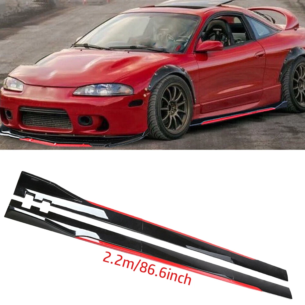 For Mitsubishi Eclipse 86.6" Side Skirt Extension Lip Rocker Panel Red line