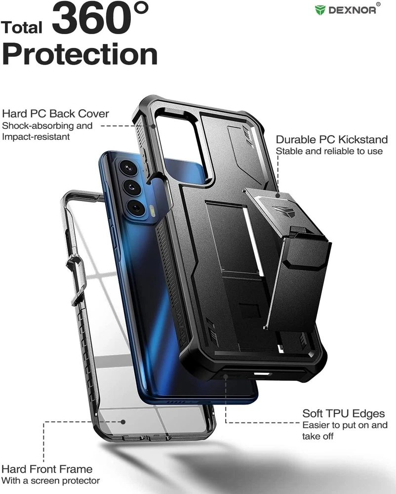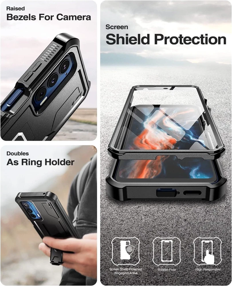 For Motorola Moto Edge 2021 5G Case with Built in Screen Protector and Kickstand Product Description 【Compatibility】 This light but tough rugged case ONLY fits your Motorola Moto Edge 2021【6.7 inches】 ,Motorola Edge 5G UW (Verizon) perfectly without any bulky feeling. Notes: Not fit Moto G Stylus & Moto G Pure, Please check the phone model carefully before purchase) 【360°Heavy Duty Protection】 Besides full-body coverage of front & back cases, the reinforced corners and raised edges around the camera and screen will offer your Moto Edge 2021【6.7 inches】 further protection against drops, cracks and scratches. 【Multifunctional Back Kickstand】The retractable kickstand is very stable to use, allowing you to enjoy hands-free viewing in portrait or landscape mode. You can also thread your finger through it to manipulate the phone with one hand. 【Precise Cutout】All buttons and interface user-friendly design to avoid frequent disassembly. And the case perfect cutouts for speakers, camera and charging hole allow you to easy access to all features and convenient for charging your phone without take off the case. 【Touch-sensitive Screen Protector】 The built-in screen protector of our protective phone case is not only resistant to scratch and smudge, it's also responsive to your touch, allowing smooth typing and gaming without any lag. What's in the Box : 1x Case with Built-in Screen Protector & Kickstand (Phone Not Included) Top-Notch USA Seller | S wift USPS/UPS delivery | Shipped within 1 Business Day | Quick Replies | Free Shipping | Prompt Communication Contact us We value open communication with our customers. Our team is committed to providing quick responses to any queries or concerns you may have regarding our products or your order. Please feel free to contact us on eBay's Internal Message System for any questions or concerns you may have. Our dedicated customer service team is committed to providing exceptional support and ensuring your shopping experience with us is nothing short of excellent. Customer Service We strive to offer the best quality products to our customers. Each item listed in our store undergoes rigorous quality checks to ensure customer satisfaction. If you have any problems, we are very glad to help you. Please message us directly through eBay for faster response. Your inquiry is important to us and we'll respond within 24 Hr. Your order will be shipped within 1 business days upon full payment received. [ Due to the different monitor and light effect, the actual color of the item might be slightly different from the color showed on the pictures. Thank you! ]