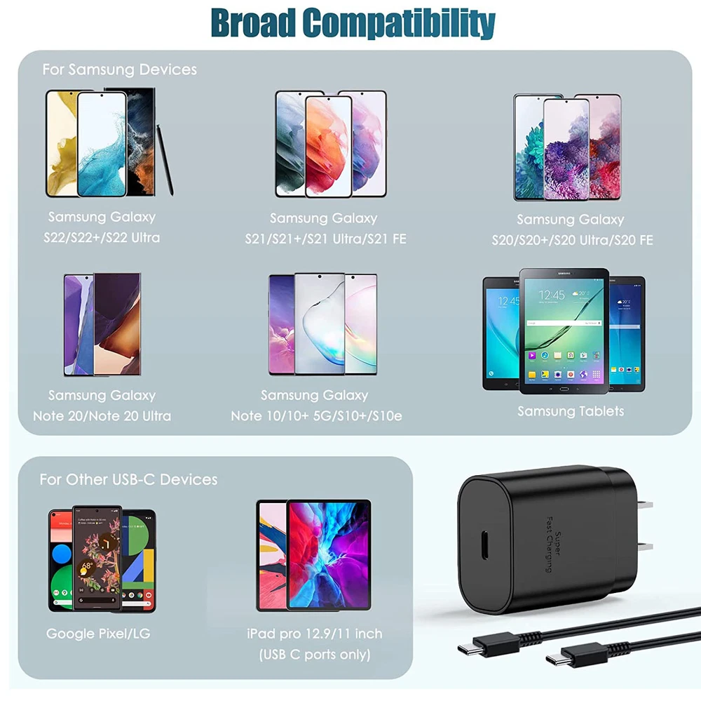 Specification : - Type: 25W PD3.0 fast charge charger - Input voltage: AC 100-240V 50-60Hz - Output power: 25W - Work efficiency: 85% - Working temperature: 0-50℃ - Output voltage: PDO 9V, PPS 3.3-5.9V or 3.3-11.0V - Output current: PDO 2.77A(9V) , PPS 3.0A(3.3-5.9V) or 2.25A(3.3-11.0V) - Output protection: short circuit protection, overvoltage protection, overcharge protection, overheat protection - Applicable products: smart phones, tablet computers, digital electronics and other equipment. Features: 100% Brand New and High Quality! UPDATED FAST CHARGER: # 25W PD3.0: Equipped with USB-C PD 3.0 charging port, Supports 25W output. SAFE AND RELIABLE : Overcharge Protection,Over-voltage,Over-temperature,Short Circuit,Over-current,Over-voltage Protection. Smart IC Chip automatically detects and delivers the optimal charging power for connected devices, to guarantee fast charging.