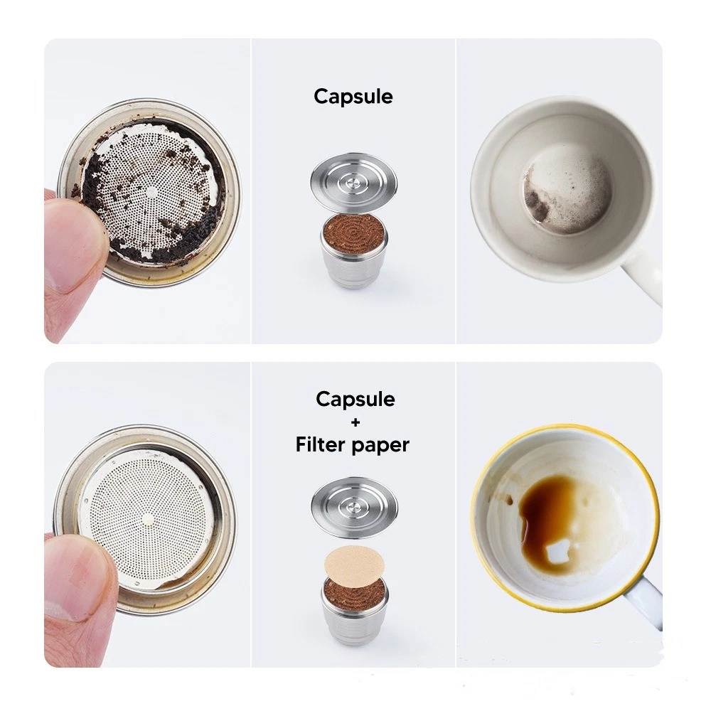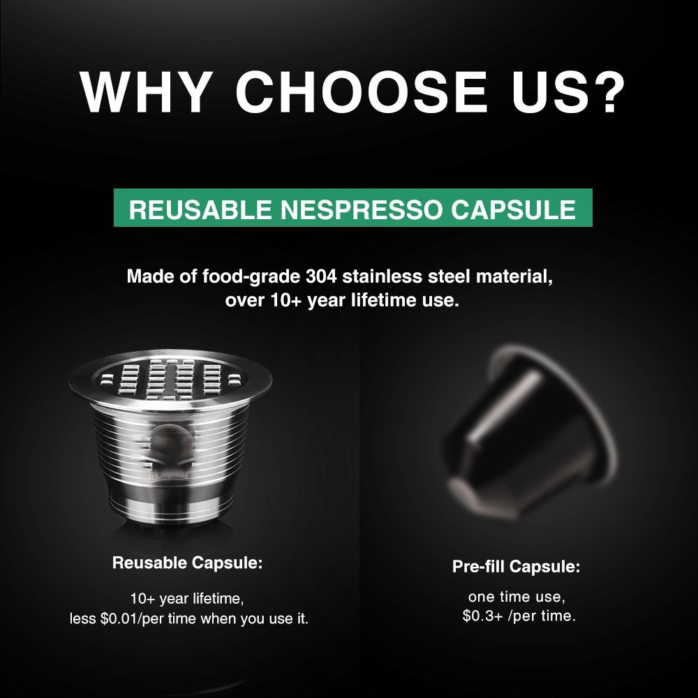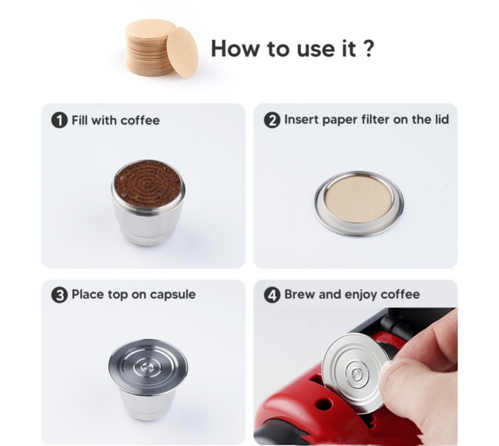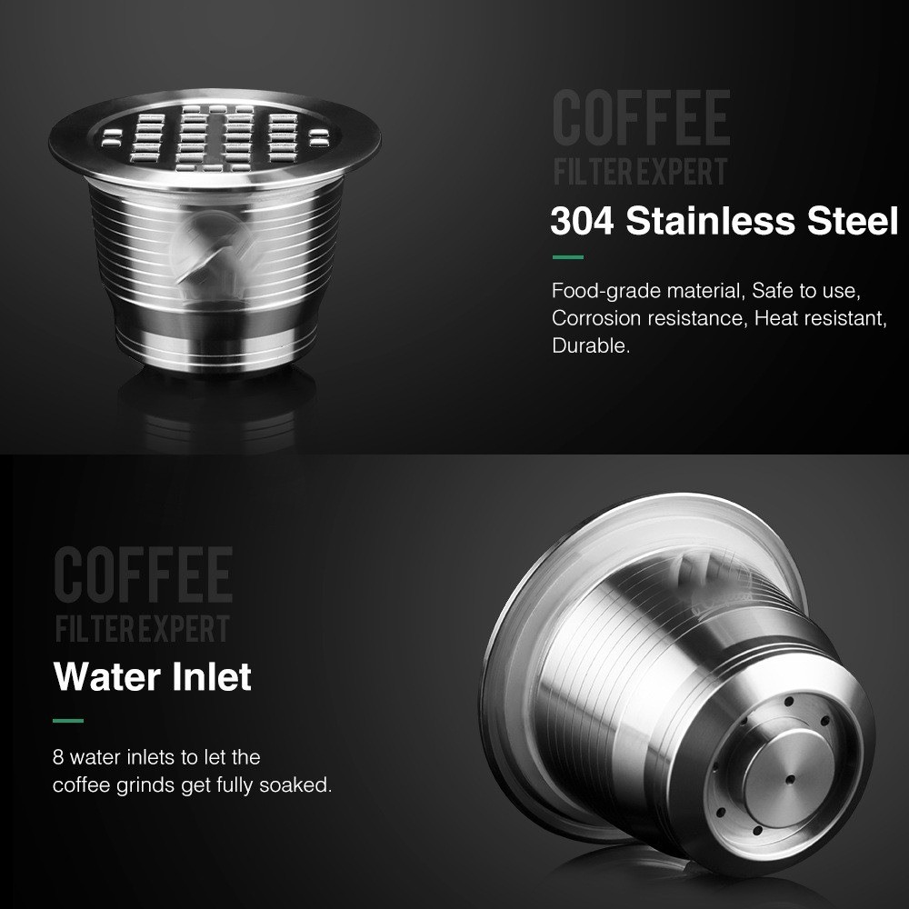 Product Description If you have any questions, please contact customer service first, do not open disputes easily, thank you! Feature: 1. Reusable, save money and save the earth. 2. Brew your own fresh coffee and make a difference in your life. 3. Safe to use, made of food grade 304 steel, BPA free, lead free. 4. Easy to use, fill the capsule with coffee powder and put it in the machine, then you can enjoy a cup of espresso Specification: Material: food grade stainless steel 304 material + food grade silicone ring Product size: top caliber about 36.7MM, bottom caliber about 23MM, height about 26.9MM Product net weight: about 0.08KG/PCS Features: Can be used for a long time, rich in coffee grease. Drop-resistant, environmental protection, saving, can use their favorite coffee powder, rich taste. Compatible for Nespresso models: For Nespresso U. For CitiZ ( Not Fit for D110 and Prodigio Krups ). For Pixie. For Le Cube. For Maestria. For Lattissima. For Inissia. For Concept. For Essenza Not compatible for Dolce Gusto Package Includes: 1* Hardware capsule 1*Spoon 1*Brush About Us We accept all payments authorized by eBay. powered by