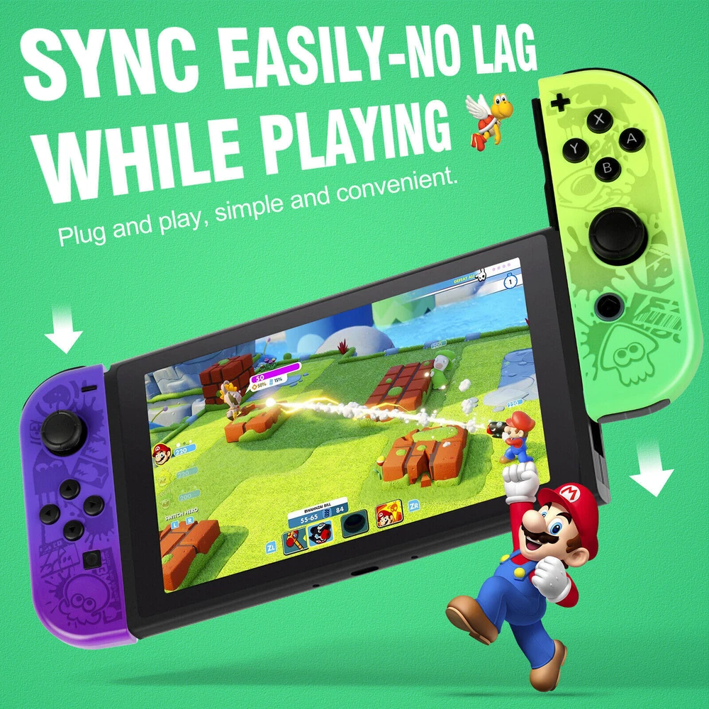 For Nintendo Switch Joy-Con Controller Gamepad Left + Right Wireless Joystick US Notes: We sell the controller and straps seperatelly, if you need both, please buy both Set. Features: 【Design for Nintendo Switch】 Switch controller is an ideal alternative to original controller, which is perfectly compatible with Switch. The left and right controller can be used alone, which is suitable for multi players combat or cooperative playing. It can also be installed on the switch to become a handheld mode, suitable for playing games alone. 【Support Wireless & Wired Function】 Switch controller the simple slot design ensures your switch is safe. Support the cable connection by sliding the switch controller onto the console and the switch controller automatically connects to the console. If the controller is not powered on, after connecting the console through the cable, the console will charge the controller. 【Ergonomic Design & Long Playtime】 Switch joycon the switch controllers offer multiple surprising new ways for players to have fun; With the unique grip and ergonomic design to rest your palms and index fingers. Comfortable to Hold If you use your switch as a handheld. You can now play for hours without your hands hurting. Especially fits for large hands. built-in battery in each joy con controller provides 15-20 hours gaming session. 【High Performance and Include Grip】 Switch joycon controller joy con controller left and Right Controllers controllers can be used as an entire controller or can be used as two independent controllers for Switch.Neoteric 3D stick can be operated precisely on 360°all-round. Offering you a pleasant gaming experience. NO NFC to support function and IR motion camera function. 【Double Shock & Motion Control Function】 Switch Joypad controller supports the Gyro axis and dual motors vibration functions. With 6-Axis gyro somatosensory and motion controls functions to provide real and stimulated gaming experience; Feel every hit and crash with hand-vibrating double shock response. Highly sensitive motion control system senses your every move and characters as well as objects in the game will move and react as you tilt,push and shake the controller. Compatible with Nintendo Switch/Lite/OLED console, NEW Replacement Not Original. Package: 1 pair controller( Left + Right ) Payment Delivery details Terms of sales About us Contact us Payment We accept payment via PayPal, Visa, Mastercard, Apple Pay, Google Pay etc. Delivery details 1. Items are generally shipped out within 24-48 hours after your payment has been cleared (Sat. & Sun. excluded.) 2. Orders from the United States will all be shipped out via USPS/Fedex. The shipment usually takes 1-5 business days( Exclude public holiday), if you need the item urgently, please contact us for detail before purchase. 3. We ship to US ONLY and do not support Collection. 4. All items will be shipped to buyer's paypal address. Please check your paypal address before place the order. 5. We are not responsible for wrong or undeliverable address. We reserve the right to charge the shipping fee again for returned items due to wrong address. Terms of sales 1. We provide 30 days free replacement ,30 days money back on non-defective, undamaged, unused and resalable products. Product is not eligible for refund after the 30-day refund period has expired. 2. Our warranty does not extended to any products that are physically damaged or that are not under normal operating conditions as a result of misuse or improper installation on the buyer/user's part. 3. For all returned products, Please contact us for the returning address. 4. In all cases, buyers pay shipping fees at their own cost to return products for exchange or refund. We will be responsible for the postage of replacements. Refund will be made upon receipt of the returned item. About us (1) We are a store, mainly run laptop accessory. Such as laptop battery , tool battery, ac adapter etc. (2) All item passed FCC / CE / ROHS certificates. Help buyer reduce the risk of damage, fire, dangerours mostly. (3) We work with a good quality OEM supplier and factory. Help you and us save money greatly. Contact us - You don't need to pay for eBay Square Trade for getting covered by our warranty policy. - There is a warranty label on our products like batteries and adapter chargers, please keep it safe and sealed. - We don't cover the failure or damage caused by misuse, accident, modification, inappropriate physical or operating environment, natural disaster, power surge, and improper maintenance or storage. - If you misuse the eBay Return Policy, our warranty to your purchase will be revoked. - Please contact us via eBay message if you have any problem and please allow us 24 hours to reply, we will do our best to help you solve it.