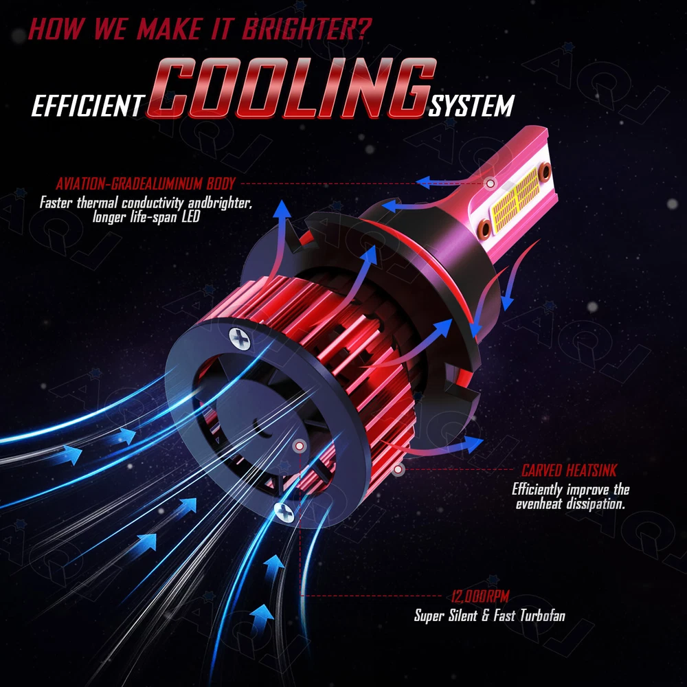 Home Payment Shipping About us Contact us Details Key Features: 1. Designed to enhance your visibility and driving safety at night and bad weather. 2. Latest 2-side Csp LED light source, super bright without blind zone. 3. Efficient cooling system ensures maximum headlight performance and appropriate working temperature. 4. Built-in smart IC chip provides intelligent temperature control and allows for instant start. 5. IP68 waterproof and high temperature resistant, withstand extreme weather conditions. 6. Easy installation without any modification or additional wiring, plug and play. Compatible Models and Years: - Universal for most vehicles on the market like SUV, bus, truck, sedan, pickup, sport utility etc. Specifications: * Brand: AQJ * Condition: 100% Brand New * Light Source:2 Sides CSP LEDs * Material: Aviation Aluminum + ABS * Color Temperature: 6000K White * Working Voltage: 12V * Output Power : 100W/Pair * Number of Bulbs: 2 * Waterproof Rate: IP68 * Luminous Flux: 330000lm/Pair * Working Temperature: -40℃ - +80℃ * Bulb Type: 9007 * Beam Type: High Beam/ Low Beam * Beam Angle: 360 Degrees * Lifespan: Over 50,000 hours * Heat Dissipation Principle: Heat Pipe Technology + Aluminum Radiator * Fitment Type: Direct Replacement * Placement on Vehicle: Front, Left, Right * Appearance color: Red *Light Color: White *Manufacturer Warranty: 5 Year Parcel Content: - 2 * 2-side 9007 LED Headlight Bulbs - 1 * Packaging Box - 1 * User Manual New and old packaging will be shipped randomly Note: 1. Please check the size of your bulbs on your vehicle before purchasing. 2. Please make sure the headlight housing has enough space for installation before purchasing. 3. Professional installation is highly recommended. If you have any questions, please feel free to contact us. Contact US Payment Return Contact US The buyer is responsible for all return shipping including a result of customer error or defective item. 1) If you received an incorrect, damaged, defective, or item not as described, contact us for a partial/full refund or replacement on our cost. 2) If you want to return the item, please contact us within 30 days after package received. Return products must also be in its original condition: including box, packaging and all other accessories. Payment (1). We offer 60 days return policy. Please contact us within 60 days t from the date you receive your order if you have any issues with the product or want return .Refund will be send after we got your resend package. (2). All returned items should be in the original packaging , return tracking information should be provided .. (3). Buyer is responsible for return shipping cost due to the problem not caused by item quality itself . Return The buyer is responsible for all return shipping including a result of customer error or defective item. 1) If you received an incorrect, damaged, defective, or item not as described, contact us for a partial/full refund or replacement on our cost. 2) If you want to return the item, please contact us within 30 days after package received. Return products must also be in its original condition: including box, packaging and all other accessories. On Nov 20, 2024 at 20:10:26 PST, seller added the following information: