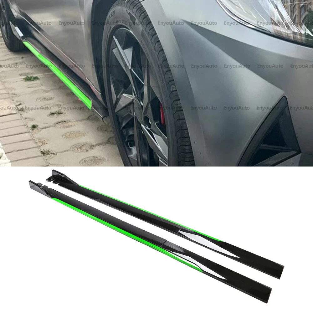 Placement on Vehicle: Left, Right Performance Part: Yes Features: Can be cut according to the length of the side skirt of the car Brand: Unbranded Fitment Type: Direct Replacement Attachment Method: Screws UPC: Does not apply Color: Black + Green Surface Finish: Painted Manufacturer Part Number: Does Not Apply Interchange Part Number: Does Not Apply Material: High Quality ABS gtin13: Does not apply Type: 86 inches UNIVERSAL Side Skirt Extension Rocker Panel Splitter Number of Pieces: 2 Mounting Hardware Included: Yes