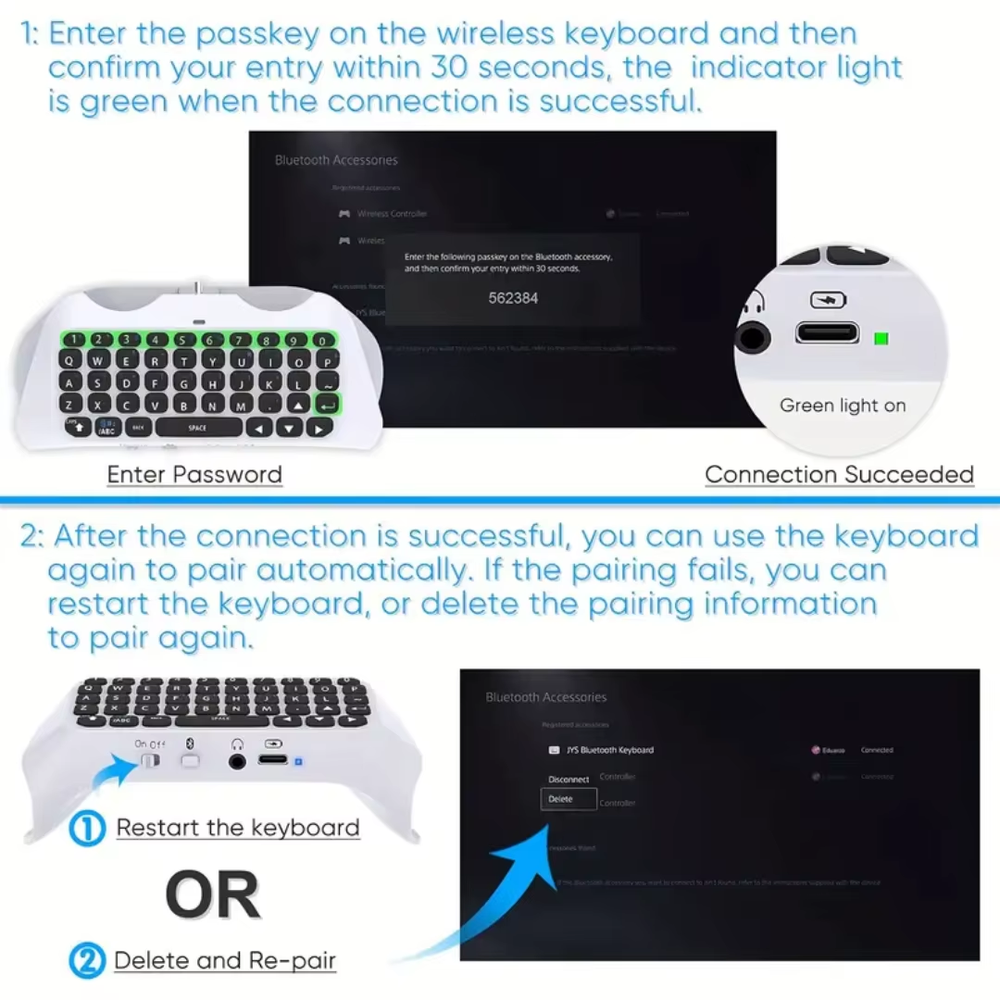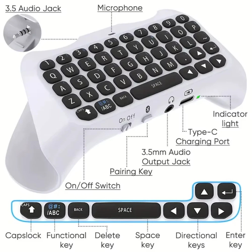 For PS5 Wireless Controller Keyboard Wireless 3.0 Mini Portable Gamepad Chatpad