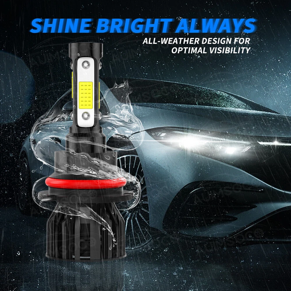 Number of Bulbs: 4 Headlight Bulb Type: HB5 (9007) H11 Other Part Number: LED Lights Wattage: 40 W Colour: White Manufacturer Part Number: AUIMSOCOR1335 Features: CAN bus Compatible, Road Legal, Rust-Resistant Suitable For: Headlight, Fog Light, Daytime Running Light Interchange Part Number: LED headlight(only High Beam) + foglight replacement Light Color: Cold White Material: Aviation 6063 Aluminum Profile Country/Region of Manufacture: China Placement on Vehicle: Front, Left, Right Non-Domestic Product: No gtin13: 610282305450 Superseded Part Number: Replace Halogen Xenon HID White Conversion Driving Lamps To Fit: Headlight and Fog Light Kit Model: Ultra-small LED Headlight Fog Light Conversion Kit Voltage: 12 V MPN: AUIMSOCOR1335 Bulb Type: 9007/HB5 (High and Low Beam)+ H11(fog light) Lumens: 4000 lm UPC: 610282305450 Manufacturer Warranty: 5 Years Vehicle Identification Number (VIN): Front,Left,Right Beam Angle: Spotlight Bulb Life Hours: Up to 50,000 Hours Type: Light Bulb Lighting Type: Specialty LED Head Light Brand: AUIMSOCO Performance Part: Yes Color Temperature: 6000K Bulb Fitment Code: HB5 (9007) OE/OEM Part Number: 9007+H11 Ballast Included: Yes Fitment Type: Direct Replacement Lighting Technology: LED