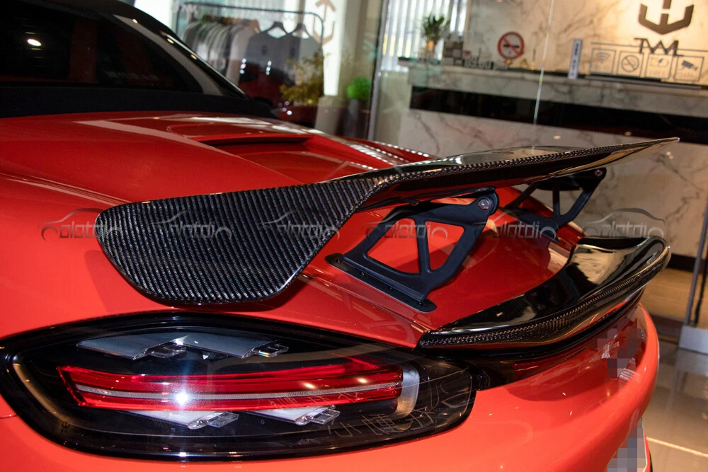 Feature: 1.For Porsche 718 Cayman Boxster 2016+ 2.3*3 Twill Weaven Carbon Fiber , with polished and shinning surface ,5 times tough than steel 3.3D design,CNC moulding for high quality carbon parts subversion traditional moulding to ensure high quality carbon parts 4.Multilayer protection packaging,shockproof & crashproof 5.Light and high intensity, with fashion and smooth appearance Specification: Color:Black Material:Carbon Fiber Process: Vacuum molding Pattern:3X3 twill weaven Installation:Screw installation For Porsche 718 Cayman Boxster 16+ Carbon Fiber GT4 Type Rear Trunk Wing Spoiler Feature: 1.For Porsche 718 Cayman Boxster 2016+ 2.3*3 Twill Weaven Carbon Fiber , with polished and shinning surface ,5 times tough than steel 3.3D design,CNC moulding for high quality carbon parts subversion traditional moulding to ensure high quality carbon parts 4.Multilayer protection packaging,shockproof & crashproof 5.Light and high intensity, with fashion and smooth appearance Specification: Color:Black Material:Carbon Fiber Process: Vacuum molding Pattern:3X3 twill weaven Installation:Screw installation Payment Delivery details About shipping and tax About us Contact us Payment 1.We accept Multiple Payment Methods Available: Credit Card, Debit Card, Gift Card, Apple Pay, Goggle Pay, PayPal and PayPal Cred. 2.Before you pay, please confirm whether it is suitable for your car model, and tell us your car model, production year, and your car photo! Delivery details 1.Customer satisfaction is our top goal. We believe our items are so outstanding. All products are quality checked. They are new and in good condition when shipped to our customers. We are convinced you will be happy with your Purchase. 2.If product is defective or damage upon arrival, or wrong product shipped, please contact us immediately. 3.Please contact us first if you have any problems/questions/concerns. We will be happy to resolve any issues you may have in a cordial and friendly manner About shipping and tax The shipping fee is only for the mainland of each country,it does not include the overseas territories,such as Virgin Islands (U.S.) , Puerto Rico, French Reunion Island, etc.But on ebay,when buyers from Puerto Rico, the shipping fee is equal to United States, it is NOT correct,please contact us for correct shipping fee, or we will cancel the order.Sorry for the inconvenience,and thanks for your cooperation. 1. Please contact us if we have not specified the shipping fee to your country. 2. If you want to upgrade the shipping,please contact us before making payment,we will revise the shipping fee. 3.Import duties, taxes and charges are not included in the item price or shipping charges. These charges are the buyer's responsibility. Please check with your local customs to determine what these additional costs will be prior to bidding/buying.Please track your parcel constantly, once customs issue arise, please contact with your local customs in time to avoid returning. About us 1.Powerful professional factory to ensure to provide best quality Products.We are specilized in designing,developing and producing carbon fiber,PU,FRP car body parts, and interior and exterior trims for Germany & American & luxury super cars. 2.We sell them directly to ensure give you best price at best quality.We have distributors from all over the world,Europe,US,Middle East,etc... 3.Our company is one of the earliest and leading auto parts manufacturer in China,established in 2006. We had more than 10 years of experience in overseas business. Contact us 1.We are trying our best to explain all details of the products here! If you have any question, please feel free to contact us by Ebay message, and We will get back to you within 24-48 hours. 2.Customer satisfaction is our NO.1 priority. If you are not happy with the item that you purchase, please contact us first. We will try our best to solve the problem with you.Please leave us a positive feedback if you receive the item.Please do not leave negative or neutral feedback without any contact.If you haven't received item in 30 days, please contact us .We appreciate your business.Happy Bidding & Have a nice day! 3.Working hours: From 9 a.m. to 6 p.m. from Monday to Friday. Holiday/Rest time: Saturday afternoon and Sunday