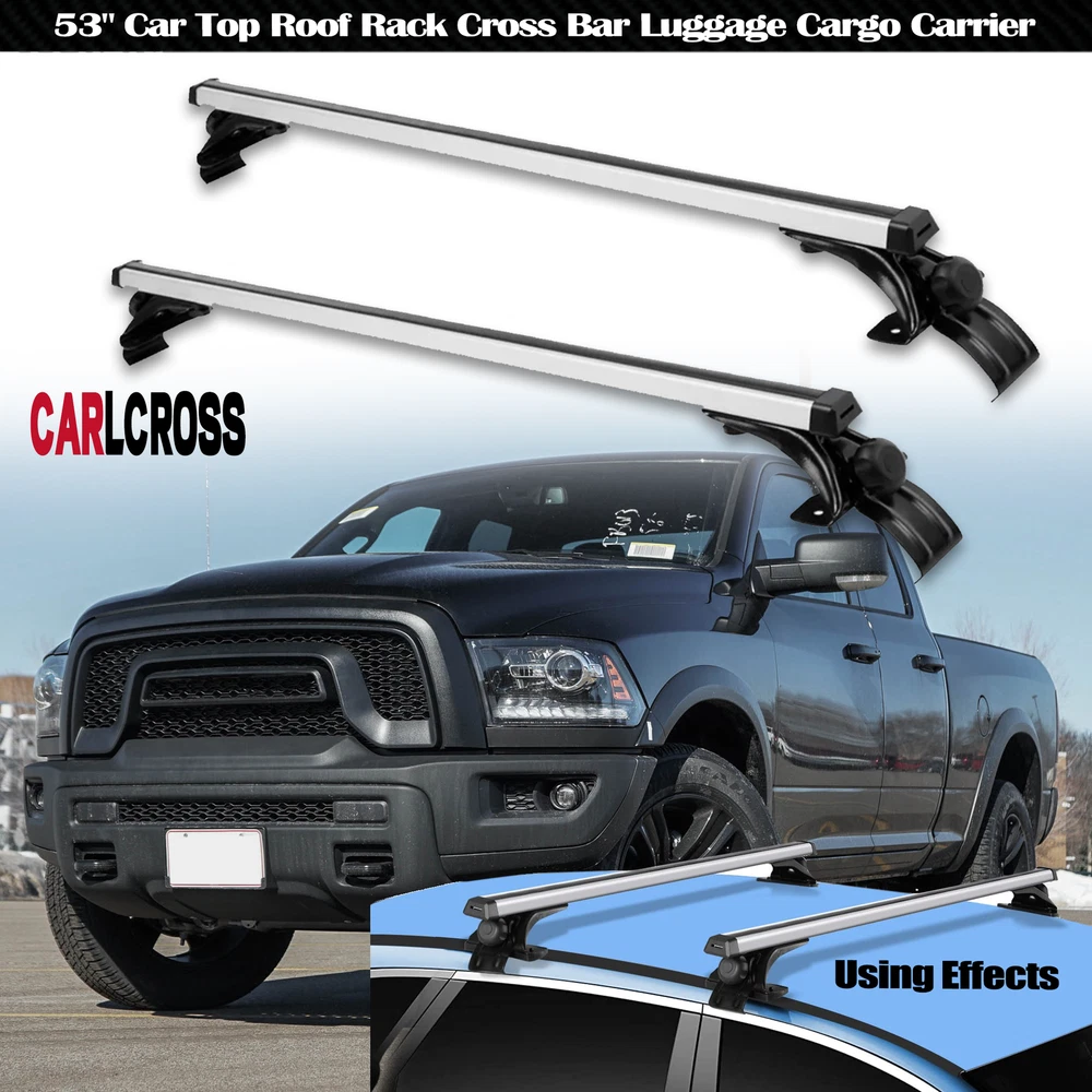 52" Universal Top Roof Rack Cross Bars For Car SUV w/Raised Rails Max.load 150LB 【FITMENT】-- Universal fit most vehicles without any type of side rails, apply to any vehicles with car roof width less than 1370mm(54") . The cross bars provide a perfect foundation for the installation of bike carriers, cargo boxes and other rooftop accessories. 【SAFETY】-- 3 Pair padded clips protect your vehicle from damage and scratches. Hook on car window frames,with skidproof rubber strap. 【HIGH QUALITY】-- Made of premium aluminum, light weight and durable. Load capacity 150lbs when load is evenly distributed. Provide plenty of space to your gear. 【EASY TO INSTALL】-- no drilling/cutting required, no side rails needed. Come with necessary installation tools, and easy to assemble and disassemble in a few minutes. Specific: Condition: New Color: Silver & Black Material: Aluminum Surface Finish: Smooth Aluminum Finish Rail: 53" In Length/ 135cm Weight Capacity: 150LB (68KG). Function: Perfect tool to hold the things when your are on holiday,Such as Cargo bags, Snowboards, Skis, Kayaks, Canoes, Bikes, luggages Package Included: a pair of cross bars, 4X mounting towers, 3 pair of mounting brackets Please check your car roof to make sure these cross bars fit your vehicle before you purchase. Warming Note: Apply to any Vehicles with Car Roof Length Less Than 137cm(54'') Professional installation is highly recommended if you don't know how to handle "Roof Top Rail Tower" is not required for this cross bars, please check above pictures for more details On Jan 16, 2025 at 14:56:44 PST, seller added the following information: