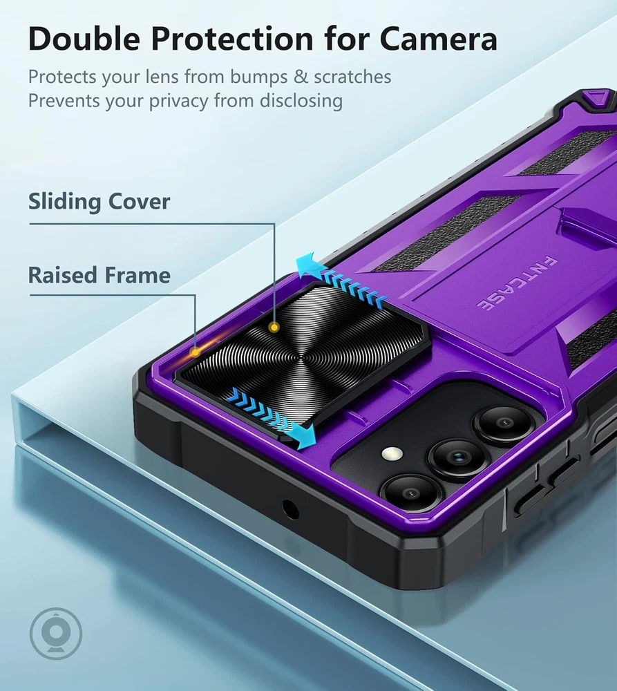 For Samsung Galaxy A15 5G Case with Military Grade Shockproof Rugged Protection Full Body Protection: This Samsung Galaxy A15 5G case is made of a premium hard PC, flexible TPU, and comes with 1 pack tempered glass screen protector with high touch sensitivity to prevent scratch. Add a layer of protection for the screen. Built-in airbags that have highly elastic molecules in four corners to make cushioning from dropping Sliding Window Design: Upgraded Anti-Scratch Sliding Camera Protection. The unique design of the camera slide cover, higher than the rear camera lens, protects your A15 phone camera lens against scratches, collision, scuffs, scrapes, and impacts while helping protect your privacy from revealing Built-in Kickstand: This shockproof Samsung A15 5G case with hidden foldable flexible stand works perfectly both in vertical and horizontal stable stand angles. Convenient for reading, watching movies, playing games, and face-time with your friends. Provides hands-free portrait and landscape viewing Secure Grip: Tire texture design and enhanced non-slip stripes on both sides of the case ensure better grip and comfortable hold. The non-slip bumper provides effectively increases friction. No worry about your phone slipping off while you’re running or doing other outdoor activities. Also perfect to be a gift for men, women, girls, and boys Perfect Fit: Our Armor Phone Case Rugged Military Grade Heavy Duty Protective Phone Cover Designed for Samsung Galaxy A15 5G 6.5 inches. WON’T be compatible with any other phone models. Precise cutouts ensure full access to all ports and buttons. What's in the Box : 1 x Case Cover, 1 x Screen Protector (Phone Not Included) Premium USA Seller | Expedited USPS/UPS Delivery | Shipped Within 1 Business Day | Rapid Responses | Free Shipping | Dedicated Communication Contact Us We prioritize clear and efficient communication with our customers. Our team is dedicated to addressing any questions or concerns you may have about our products or your order promptly. Feel free to reach out to us via eBay's Internal Message System with any inquiries or issues you might encounter. Customer Service We are dedicated to offering top-quality products to our customers. Should you encounter any issues, we are more than happy to assist you. For the quickest response, please contact us directly through eBay. Your inquiries are important to us, and we strive to respond within 24 hours. Shipping Information Your order will be shipped within 1 business day once full payment is received. Note: Due to variations in monitor settings and lighting conditions, the actual color of the item may differ slightly from what is displayed in the pictures. Thank you for your understanding!