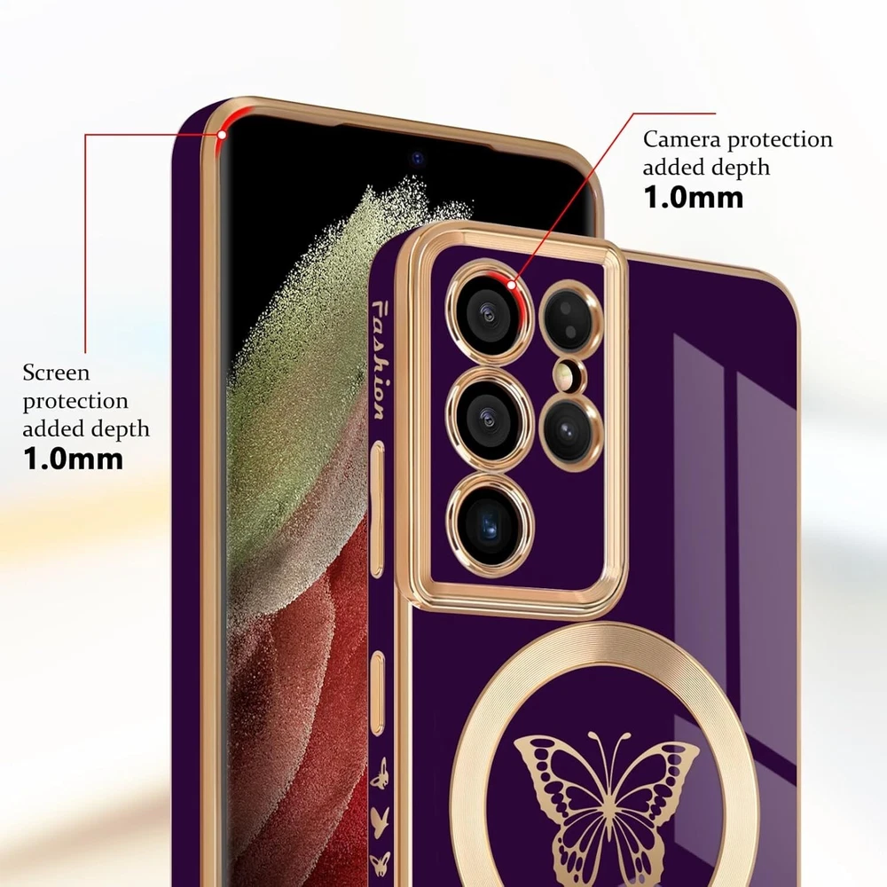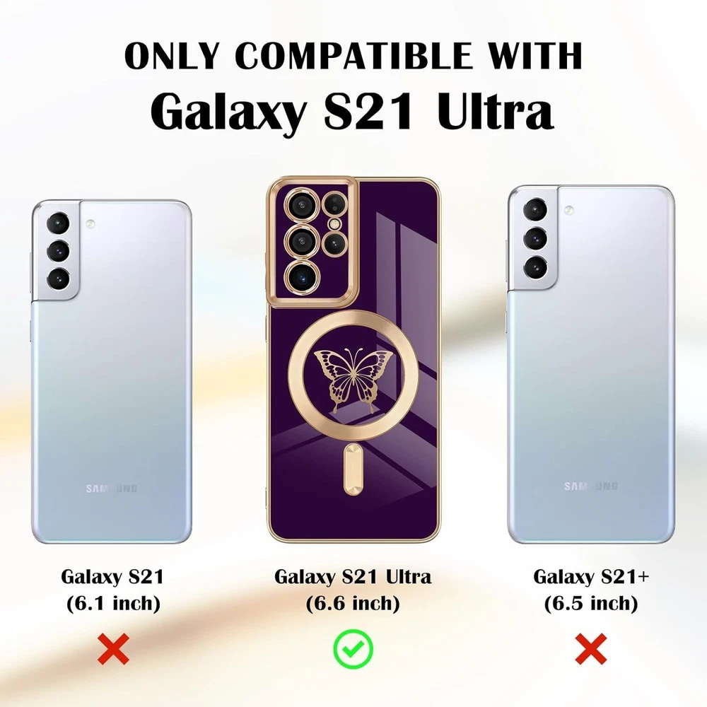 For Samsung Galaxy S21 Ultra 5G Case With Soft TPU Shockproof Protective Cover 【Perfect Fit】This magnetic case is specially designed for Samsung Galaxy S21 Ultra. Both support wireless and wired charging without removing the case. 【Cute Butterfly Design】Cute butterfly pattern, simple and fashionable, perfectly decorates your phone, making your phone so pretty. The luxury design makes this phone case a unique and elegant gift for women girls men. 【Stronger Magnetic Design】Built-in stronger magnets adsorption force without signal interference it can be firmly attached to all MagSafe accessories like the wireless charger, wallet, battery pack, and car mount. It will not easily fall off. 【Shock Absorption】Soft TPU material helps protect your phone screen and camera from rubbing and scratching on flat surfaces. Provide all-round protection for your phone from drops and bumps. 【Precise cutouts】 The precise cut-out allow you access to all the function ports easily, such as, speaker, camera, charging port, volume buttons, etc. The slim and lightweight design make it easy to install and remove. What's in the box: 1x Case (Phone not included) "We are committed to your satisfaction. If you are not completely satisfied with our product, we offer a 100% money-back guarantee." USA SELLER!! BRAND NEW!! BEST QUALITY!! FAST DELIVERY VIA USPS!! GREAT FOR ANY OCCASIONAL GIFT TO YOUR FRIENDS, FAMILY, NEAR AND DEARS ONES!! Contact us Please give us the opportunity to resolve any problem before leaving any negative feedback or open any dispute. Please feel free to contact us on eBay's Internal Message System for any questions or concerns you may have. If you want to change shipping address or want a faster shipping etc., it's Better leave a note of under your order, so the system can hold on your order before we see your message, thanks. We will answer all your questions or concerns ASAP. Feedback We will make every effort to make your shopping the most pleasant and wonderful! Please contact us before leaving a negative feedback, giving us a chance to resolve your problem. Customer Service If you have any problems, we are very glad to help you. Please message us directly through eBay for faster response. Your inquiry is important to us and we'll respond within 24 Hr. SHIPS FROM U.S!!!!!!!!RECEIVE IT FAST AND FREE!!!!!!! Your order will be shipped within 1 business days upon full payment received. [ Due to the different monitor and light effect, the actual color of the item might be slightly different from the color showed on the pictures. Thank you! ]