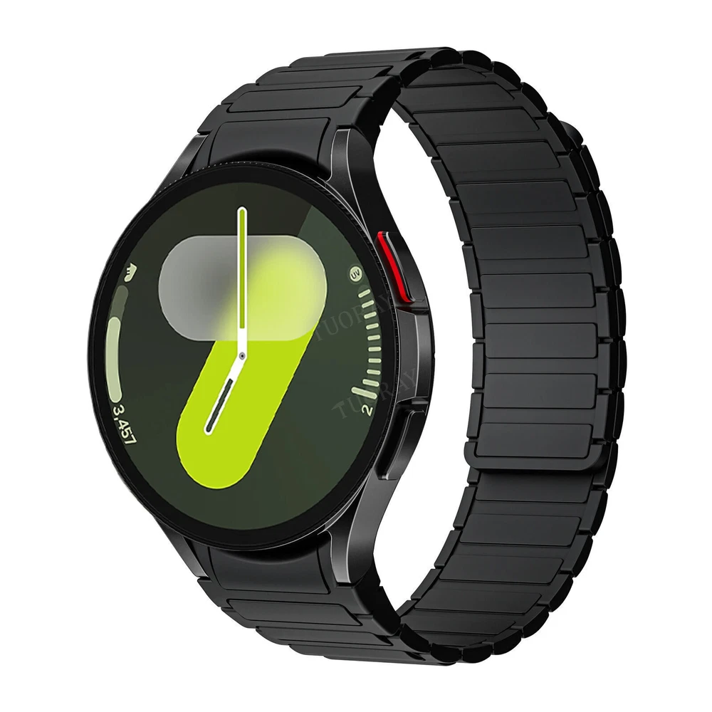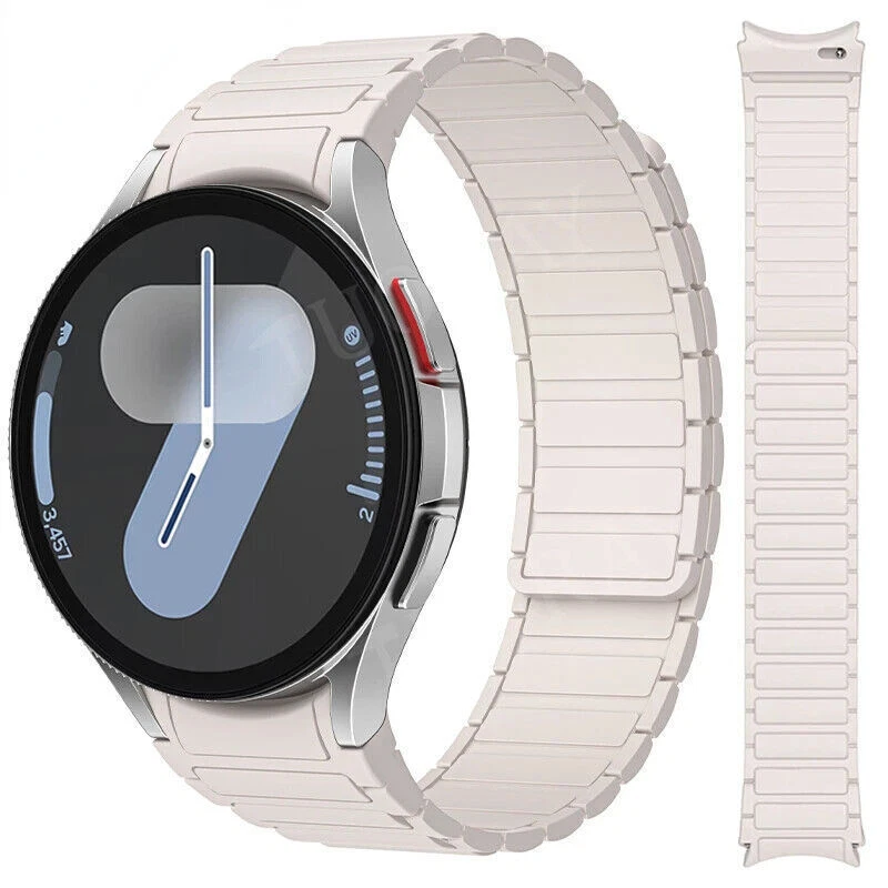 For Samsung Galaxy Watch 7 FE 6 Classic 5 Pro 4 44mm 40mm Magnetic Silicone Band Features: Brand new curved end silicone replacement watch band Watch band width :20mm Watchband compatible model: For Samsung Galaxy Watch FE 40mm For Samsung Galaxy Watch 7 40mm For Samsung Galaxy Watch 7 44mm For Samsung Galaxy Watch 6 40mm For Samsung Galaxy Watch 6 44mm For Samsung Galaxy Watch 6 Classic 43mm For Samsung Galaxy Watch 6 Classic 47mm For Samsung Galaxy Watch 5 40mm For Samsung Galaxy Watch 5 44mm For Samsung Galaxy Watch 5 Pro 45mm For Samsung Galaxy Watch 4 44mm For Samsung Galaxy Watch 4 Classic 42mm For Samsung Galaxy Watch 4 Classic 46mm Come with quick release pins, easy to attach and remove strap Band Length:103mm+123mm Package included: 1x silicone watch strap (Not included watch)