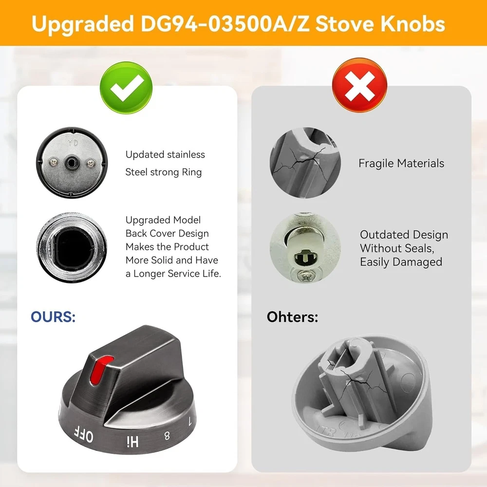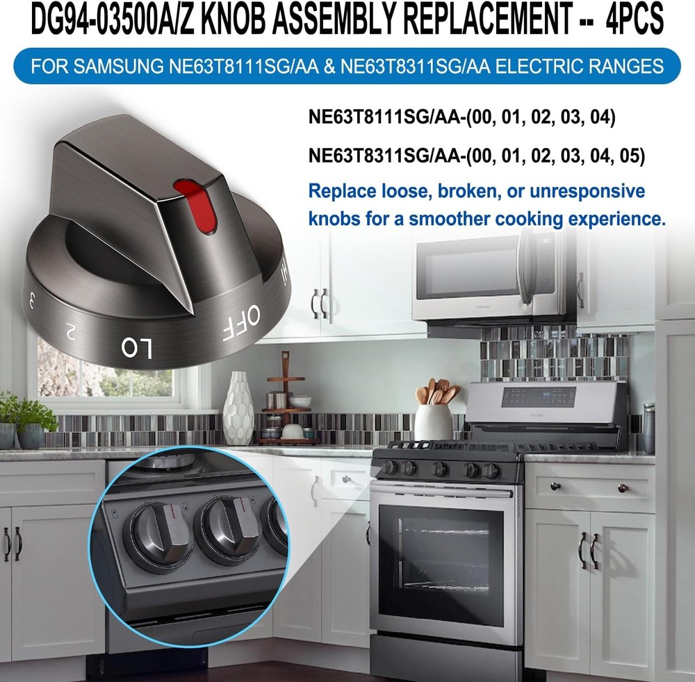 APPLICATION: The DG94-03500A/Z knob assembly is compatible with Samsung NE63T8111SG/AA & NE63T8311SG/AA electric ranges, replacing part numbers DG94-03500Y & DG64-00975A, DG94-03500Z. Ensures seamless operation for your oven/stove. SOLVES COMMON KNOB ISSUES: Fix frustrating starting and setting selection problems with these durable knobs. Say goodbye to loose, broken, or unresponsive knobs for a smoother cooking experience. SLEEK & STYLISH UPGRADE: DG94-03500A/Z Stove Knob Replacement Parts Fit for Samsung NE63T8111SG/AA, NE63T8311SG/AA Electric Range Oven, Replace DG94-03500Y, DG64-00975A, DG94-03500Z APPLICATION: The DG94-03500A/Z knob assembly is compatible with Samsung NE63T8111SG/AA & NE63T8311SG/AA electric ranges, replacing part numbers DG94-03500Y & DG64-00975A, DG94-03500Z. Ensures seamless operation for your oven/stove. SOLVES COMMON KNOB ISSUES: Fix frustrating starting and setting selection problems with these durable knobs. Say goodbye to loose, broken, or unresponsive knobs for a smoother cooking experience. SLEEK & STYLISH UPGRADE: Enhance your kitchen’s look with these sleek black stainless steel knobs. Combines modern design with improved functionality for a professional touch. EASY INSTALLATION: Includes 4 knobs for quick, hassle-free replacement—no special tools needed. Save time and avoid costly repairs with this straightforward DIY solution. MATERIAL: The DG94-03500Z knob assenbly is made from quality steel for long-lasting performance. A must-have oven knob replacement to restore your stove precision and safety. PACKAGE INCLUDED: 4PACK Stove Knob Item Specifics Brand NO-Auto MPN NOQP2420 Warranty 1 Year Type Electric stove knob Fitment For samsung Model DG94-03500A/Z Material Stainless Steel Color Dark Grey Suitable For Samsung Stove Knob Replacement Set Includes 4pcs Power Source Electric Finish Matte Payment 1. Payment methods accepted: Payoneer . Our Payoneer account allows you to pay by credit card, debit card and your paypal balance. 2. We ship items to Your Ebay address .Please make sure your Ebay address is correct before you pay, cause it cannot be changed once the order shipped out. Shipping 1. Item will be shipped out within 1-2 business day after clear payment received. 2. Please make sure shipping address on your ebay account is correct & up-to-date. 3. All of our items are shipped from our AU warehouse. 4. Please feel free to contact us by email if you cannot get your order in time. Please read the shipment and payment detail carefully before you bid. Returns 1. Return to us within 30 days from the delivery date for exchange or refund. Refund will be given as Money back or item exchange (buyer's choice). 2. Return shipping fee is the responsibility of buyer unless the return is a result of our mistake. 3. If you need return, please contact our customer service representative, let us know the detailed problem and send us some pictures for confirmation. Contact Us Please contact us via ebay using" Contact member ". We will respond within 1 business day or less.Thank you for your understanding. Our office hours is as below : - 9:00 a.m. to 6:00 p.m. (GMT +8) of Monday to Friday - 9:00 a.m. to 1:00 p.m. (GMT +8) of Saturday And our office is closed on Sunday and public holidays. We apologize for the late reply during the holidays.Please contact us via ebay using" Contact member ". We will respond within 1 business day or less. Please include your ebay item number or order number in all communications. DG94-03500A/Z Stove Knob Replacement Parts Fit for Samsung NE63T8111SG/AA, NE63T8311SG/AA Electric Range Oven, Replace DG94-03500Y, DG64-00975A, DG94-03500Z APPLICATION: The DG94-03500A/Z knob assembly is compatible with Samsung NE63T8111SG/AA & NE63T8311SG/AA electric ranges, replacing part numbers DG94-03500Y & DG64-00975A, DG94-03500Z. Ensures seamless operation for your oven/stove. SOLVES COMMON KNOB ISSUES: Fix frustrating starting and setting selection problems with these durable knobs. Say goodbye to loose, broken, or unresponsive knobs for a smoother cooking experience. SLEEK & STYLISH UPGRADE: Enhance your kitchen’s look with these sleek black stainless steel knobs. Combines modern design with improved functionality for a professional touch. EASY INSTALLATION: Includes 4 knobs for quick, hassle-free replacement—no special tools needed. Save time and avoid costly repairs with this straightforward DIY solution. MATERIAL: The DG94-03500Z knob assenbly is made from quality steel for long-lasting performance. A must-have oven knob replacement to restore your stove precision and safety. PACKAGE INCLUDED: 4PACK Stove Knob Item Specifics Brand : NO-Auto MPN : NOQP2420 Warranty : 1 Year Type : Electric stove knob Fitment : For samsung Model : DG94-03500A/Z Material : Stainless Steel Color : Dark Grey Suitable For : Samsung Stove Knob Replacement Set Includes : 4pcs Power Source : Electric Finish : Matte Payment Shipping Returns Contact Us 1. Payment methods accepted: Payoneer . Our Payoneer account allows you to pay by credit card, debit card and your paypal balance. 2. We ship items to Your Ebay address .Please make sure your Ebay address is correct before you pay, cause it cannot be changed once the order shipped out. 1. Item will be shipped out within 1-2 business day after clear payment received. 2. Please make sure shipping address on your ebay account is correct & up-to-date. 3. All of our items are shipped from our AU warehouse. 4. Please feel free to contact us by email if you cannot get your order in time. Please read the shipment and payment detail carefully before you bid. 1. Return to us within 30 days from the delivery date for exchange or refund. Refund will be given as Money back or item exchange (buyer's choice). 2. Return shipping fee is the responsibility of buyer unless the return is a result of our mistake. 3. If you need return, please contact our customer service representative, let us know the detailed problem and send us some pi