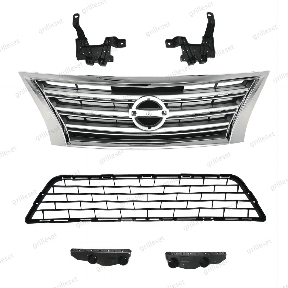 Fit for : 1 Set (6 PCS) Includes:(See more pictures for details) 2 Pc front grille retainer brackets 1 Pc front upper black grille with chrome trim 1 Pc front centre black grille mesh 2 Pcs front bumper brackets Item OE number : 62310-3SH0A;62225-3SH0A;62224-3SH0A;62254-3SH0A Installation : Perfect fit direct replacement, no modifications required. Installation manual not provided; we recommend professional installation. Item's-Features : Superior quality kit 100% brand new Made from high-quality materials Excellent replacement part, no modifications needed Other parts fit for