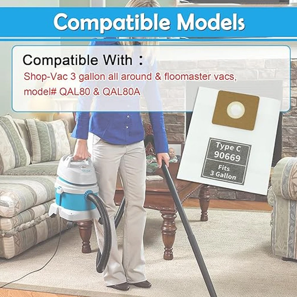 $ 4.7590669 Vacuum Filter Bags Type C, Compatible with Shop-Vac 3 Gallon Vacuums