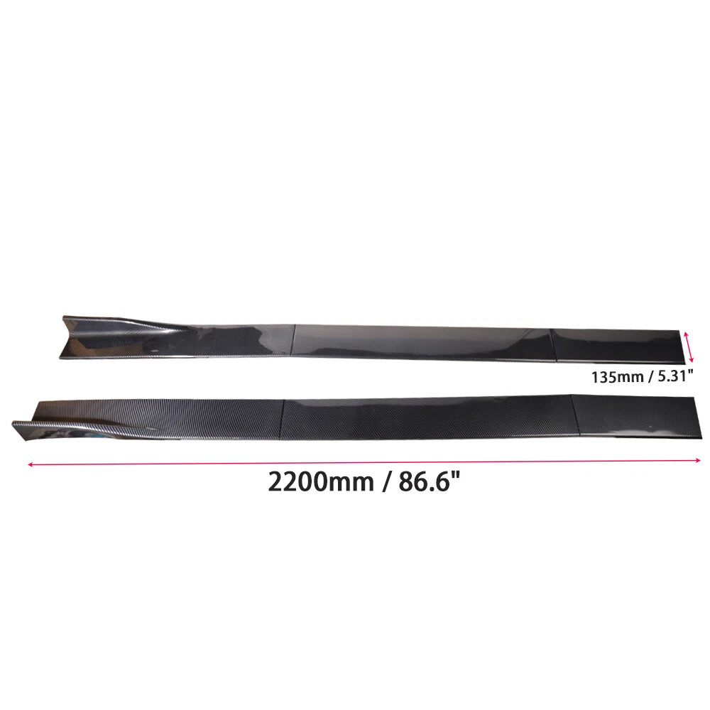 gtin13: Does not apply Number of Pieces: 2 Interchange Part Number: Does Not Apply Mounting Hardware Included: Yes Manufacturer Part Number: Does Not Apply Fitment Type: Direct Replacement Surface Finish: Painted Color: Carbon Fiber Type: 86 inches UNIVERSAL Side Skirt Extension Rocker Panel Splitter Features: Can be cut according to the length of the side skirt of the car UPC: Does not apply Brand: Unbranded Placement on Vehicle: Left, Right Material: High Quality ABS Attachment Method: Screws Performance Part: Yes