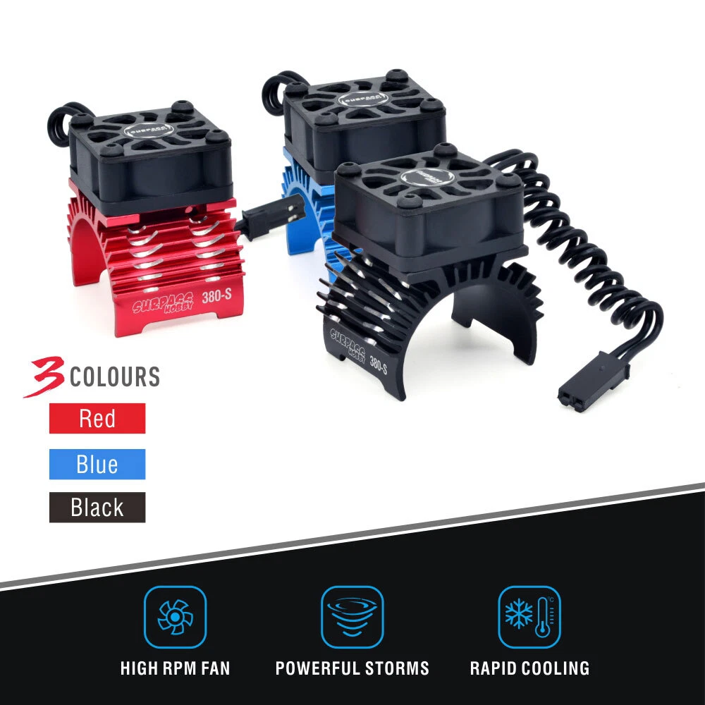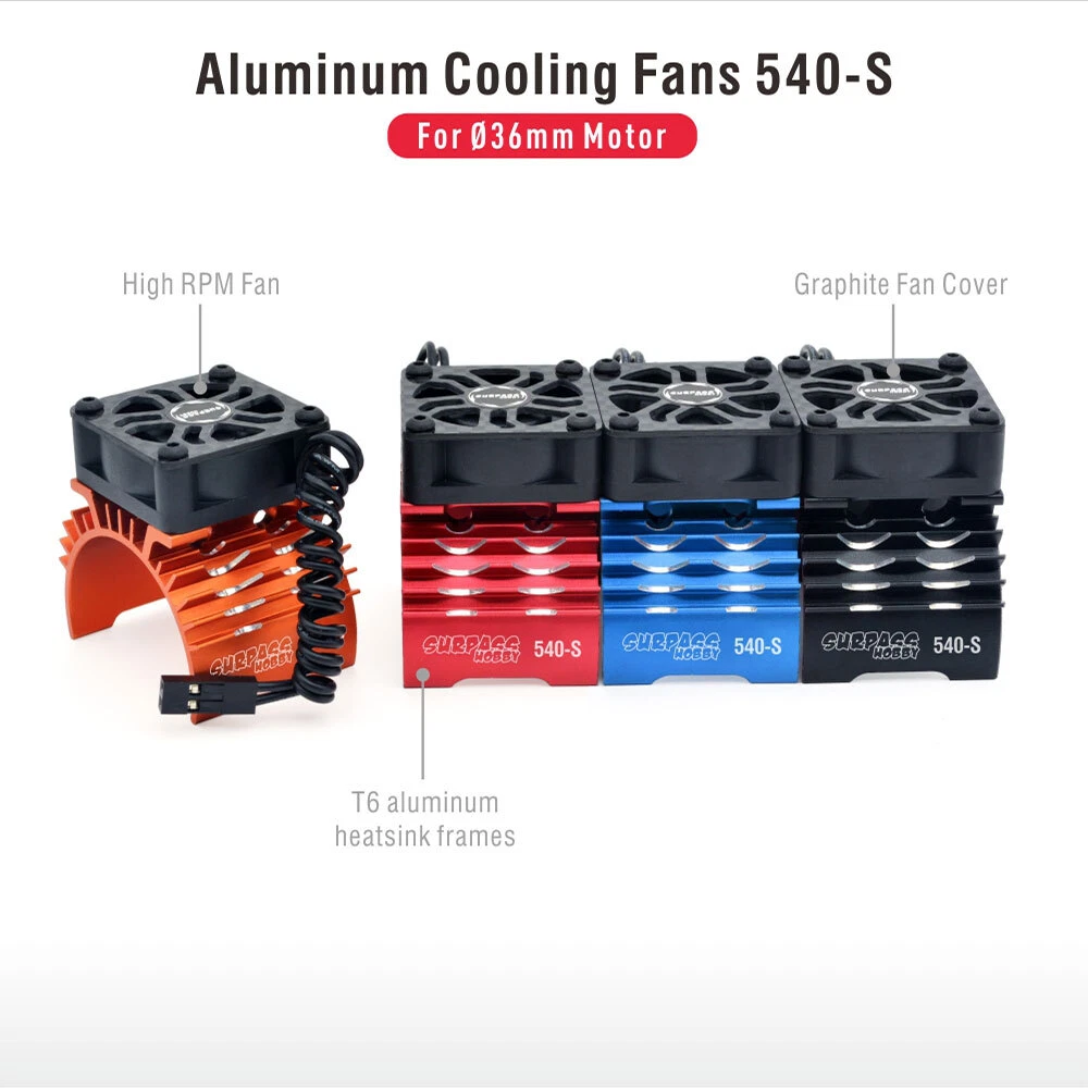 SAFE & SECURE SHOPPING 100% SATISFACTION GUARANTEED FAST SHIPPING For Surpass Hobby 28/29/36mm Brushless Motor Heatsink Cooling Fan 8.4V/32000rpm Product Description If you have any questions, please contact customer service first, do not open disputes easily, thank you! Features: 1. RC Motor Fan: SURPASS HOBBY Brushless motors coolers are equipped with one motor heatsinks, which is designed for 1/8 1/10 1/12Scale 380 390 540 550 Brushless Motor 2.RC Fan Powerful Storms: RC car heatsinks high RPM fan are rapid cooling ,they can prevent your motor from overheating and extend the life of the motor.Dual fans can bring twice wind 3.RC Fan Metal: RC fans are made of high quality metal materials of T6 aluminum heatsink frames and graphite fan cover which make the cooling fan is durable for long term use 4.Unique Extension Cable:With extension cable ( Length : 263mm ). It is convenient for you to use and flexibly to assemble 5.Easy to install:The cooling fans are small and easy to install. Moreover, the plug is not divided into positive and negative poles, so there is no need to worry about the failure of the wrong connection Descriptions: RC Motor Fan Cooling Fan with one motor heatsinks. Small size and lightweight, convenient for you to install,high speed heat dissipation cooling RC Fan 1/8 1/10 1/12for 380 390(28/29mm) , 540 550 (36mm) brushless motor. Specifications: Brand: SURPASS HOBBY Item name: Motor Heatsink Cooling Fan Type: Single Fan Material: Aluminum&Plastic Color: Black,Red,Orange,Blue optional Working voltage: ≤8.4V Max RPM: 28000/32000@8.4V Suitable for diameter 28/29/36mm 380 390 540 550 motor Weight: 29g /34g Package Included: 1 x Motor Heatsink Cooling Fan 1 x Extension Cable Note: 1. Due to manual measurement, please allow 1-3mm error. Please make sure you don't mind before ordering. 2. Please allow 1-3 gram weight error. Please make sure you don't mind before ordering. 3. Due to different lighting in the photos and differences in monitors, the pictures may not reflect the actual colour of the object. Please make sure you don't mind before ordering, thank you! About Us About Us We accept all payments authorized by eBay. Copyright © 2022 Tongtool