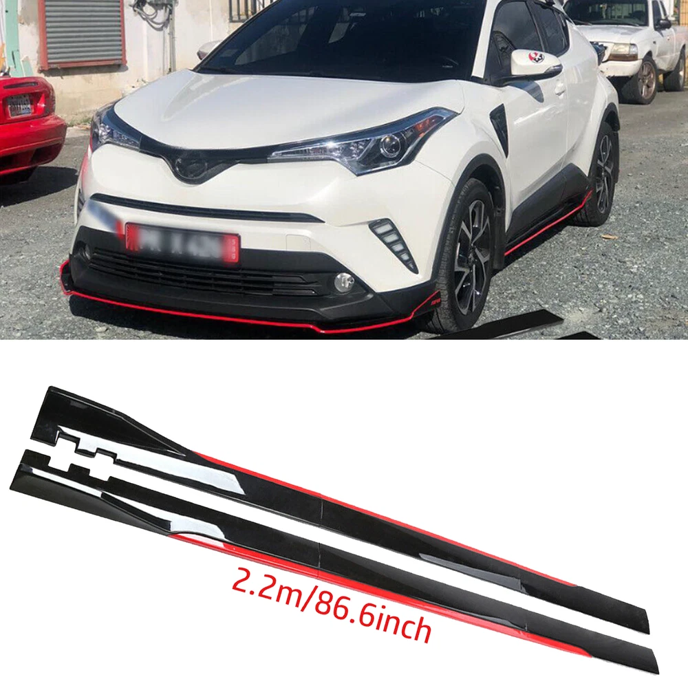For Toyota CHR 86.6" Side Skirt Extension Lip Rocker Panel Red line Glossy