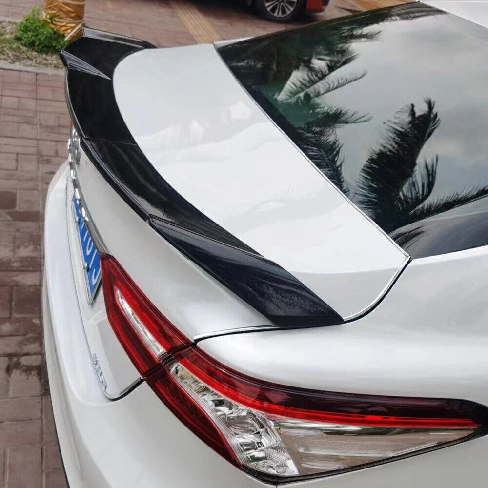 Product Description For Toyota Camry 18-20 KN Style Rear Spoiler+Narrow Style Roof Wing gloss black PACKAGE INCLUDED: 1x Rear Trunk Spoiler Lip (Tape-On Installation) 1x Narrow Style Roof Wing FITMENT: For Toyota Camry 2018-2020 SPECIFICATION: Material: ABS Spoiler Color: Gloss Black Fitment Type: Installed By Double-Sided Tapes. Apply Area: Rear Trunk Instruction: 1.Test fitting the spoiler and mark the place where you are going to apply. 2. Cleaning the applying area with some alcohol or detergent or water or something (we don’t provide cleaning tools). 3. Hold the Spoiler on place and apply some extra tapes to help you adjust the position end-by-end. 4. Once everything is lined up, peel off the red skin on back to apply the double-sided tapes. 5. You need to press these spoiler in a few minutes to reinforce the attaching. FEATURE: Direct Fit. Easy install and durable use. Great quality and great Fitment. Correct Connector No cutting or splicing. Strict quality control standards to Build and test. It'll give you a sporty look without making it too aggressive. Light in weight and enduring, different optical line comes from different points of view. *Instruction Not Included, Professional Installation Is Highly Recommended.* Note Shipping Policy Return Policy Contact us Please check and confirm these things fits yours before buying. If you can't install, please get professional maintenance staff to help you install. Instruction manual is NOT INCLUDE. Items will be shipped from our US warehouse. We ship item within 24-48 hours after payment has been verified (Orders are not processed on holidays). The package will be sent to the receiving address you set. Please leaving correct address will minimize delay. Return is accepted within 30 days after the buyer receiving the item. If you need return, let us know the detailed problem and send us some pictures for confirmation. Then get a address for return or refund . If you do have any questions or concerns, please feel free to contact via eBay's contact seller button. We will answer your email within 24 hours except Holidays, Saturday and Sunday. Note Please check and confirm these things fits yours before buying. If you can't install, please get professional maintenance staff to help you install. Instruction manual is NOT INCLUDE. Shipping Policy Items will be shipped from our US warehouse. We ship item within 24-48 hours after payment has been verified (Orders are not processed on holidays). The package will be sent to the receiving address you set. Please leaving correct address will minimize delay. Return Policy Return is accepted within 30 days after the buyer receiving the item. If you need return, let us know the detailed problem and send us some pictures for confirmation. Then get a address for return or refund . Contact us If you do have any questions or concerns, please feel free to contact via eBay's contact seller button. We will answer your email within 24 hours except Holidays, Saturday and Sunday. powered by