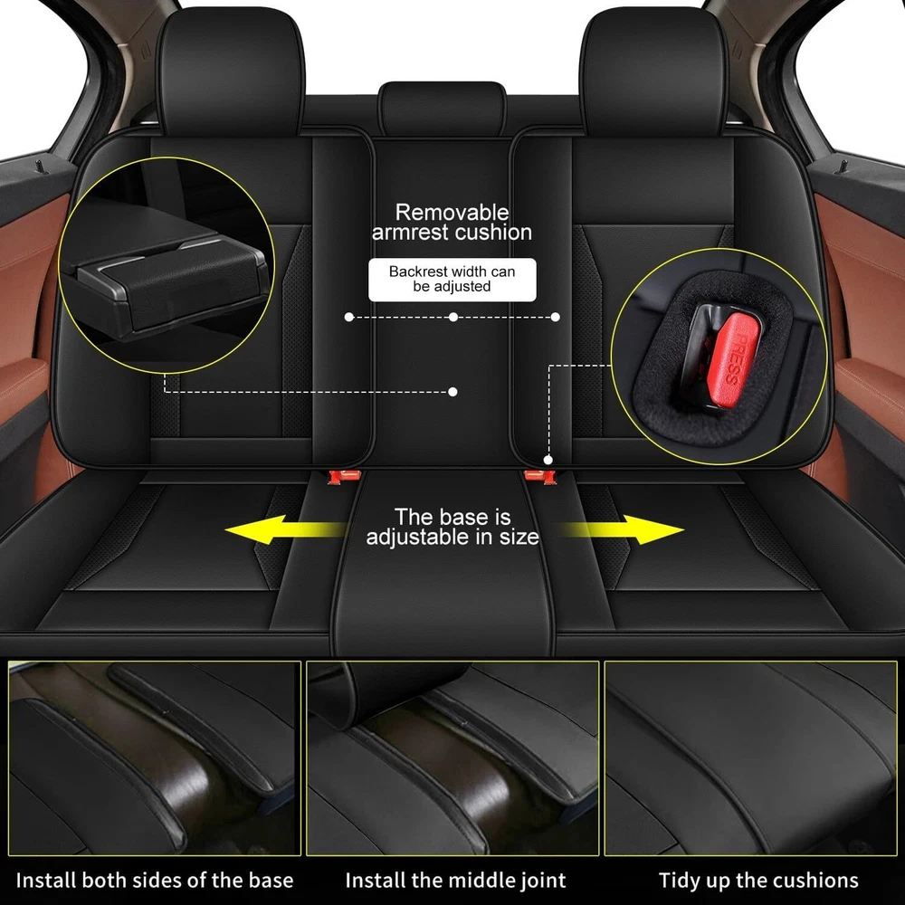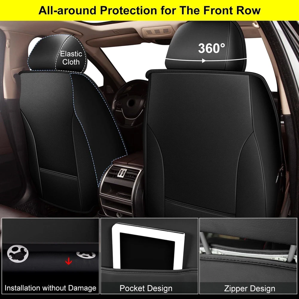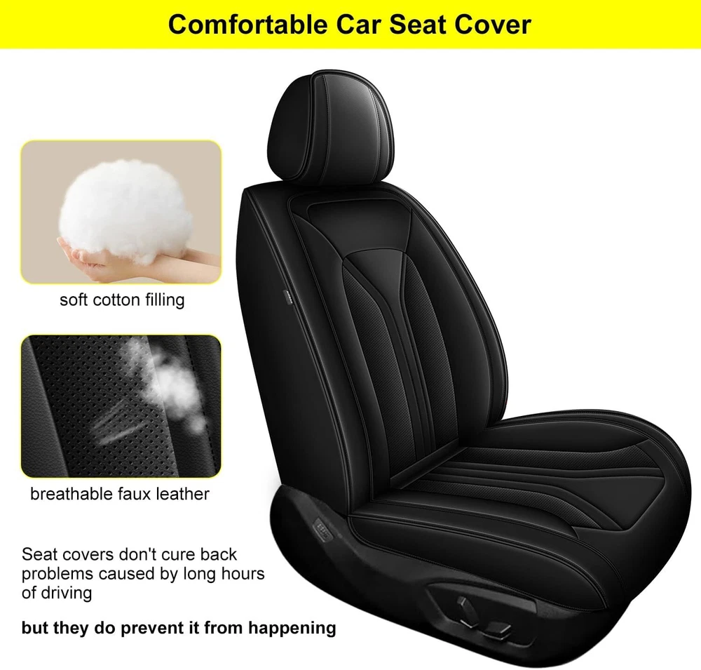 【Please note】 1, Please refer to the list of applicable car models and years before placing an order.If you can't find your car model or don't know wether it is suitable or not,please contact with us before placing the order. 2, Front headrests and Rear headrests both need detachable,if the headrest is not detachable, Please don't purchase. 【Features】 Easy to clean: The first layer of the seat cover is made of synthetic leather. It is waterproof and impermeable. Easy to clean, just wipe gently with a damp cloth. Environmentally friendly, non-toxic, volatile, and scratch resistant leather. Maintenance Function Design The seat cover is designed around the car to maintain all functions and controls of the seat, such as airbags, seat belts, and seat adjustment. The independent front headrest cover can easily adjust the headrest for optimal comfort and safety. The backrest has a pocket design that can hold small items and magazines. Premium Material Our seat covers are made with premium materials and quality workmanship. Selected imitation leather, high elastic sponge, hot-pressed non-woven fabric, non-slip base fabric, five-layer design. Better material quality, better design and manufacturing, soft and comfortable, keep you comfortable driving experience during your daily commute or long journey, bring you a better user experience and longer service life. Full surround protection: The seat covers are made of synthetic leather, and the front seat covers feature a fully wrapped design. The back of the headrest and the side of the seat cover are made of elastic fabric, which has elasticity. The connection part of the rear seat cover adopts v-e-l-c-r-o, greatly improving the convenience of adjusting the length 【Specification】 Product Type:Seat Cover Material:Faux Leather Color:Black Fitment:Fit For Toyota Camry 2018-2024 【Package Include】 2* Front Seat Covers 3* Rear Seat Covers 5* Headrest Covers 1* Parts required for installation in one bag 1* Install Guide On Nov 22, 2024 at 18:06:13 PST, seller added the following information: