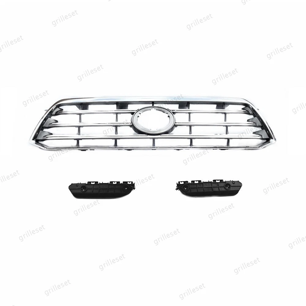 Fit for : 1 Set (3 PCS) Includes:(See more pictures for details) 1 Pc front upper black grille with chrome trim 2 Pcs front bumper brackets Item OE number : 53101-0E110;52146-0E030;52145-0E030 Installation : Perfect fit direct replacement, no modifications required. Installation manual not provided; we recommend professional installation. Item's-Features : Superior quality kit 100% brand new Made from high-quality materials Excellent replacement part, no modifications needed Other parts fit for