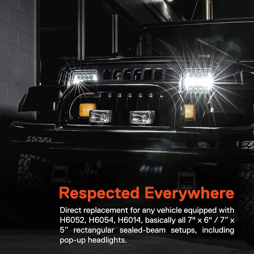 (Package of 1)Brightest 5X7" 7x6inch Rectangle LED Hi/Lo Headlight DRL for Toyota Pickup Truck Specification: - Function: Hi/Lo Beam + DRL - Size: 5x7 inch / 7x6 inch - LED Power:100W/pc - Luminous Flux: 6500LM@high beam,4500LM@low beam - Operating Voltage: 9-30V DC - Waterproof rate: IP 68 - High intensity LEDs - Color Temperature: 6000K-6500K - Material: Aluminium heat sink body - Lens material: PMMA Lens - Life Span: more then 80000 hours - Working temperature: -40~ 85C Package included: 1PC Black 5x7 7x6 inch 105w led headlight 1PC H4 9003 Harness Warranty 5 years