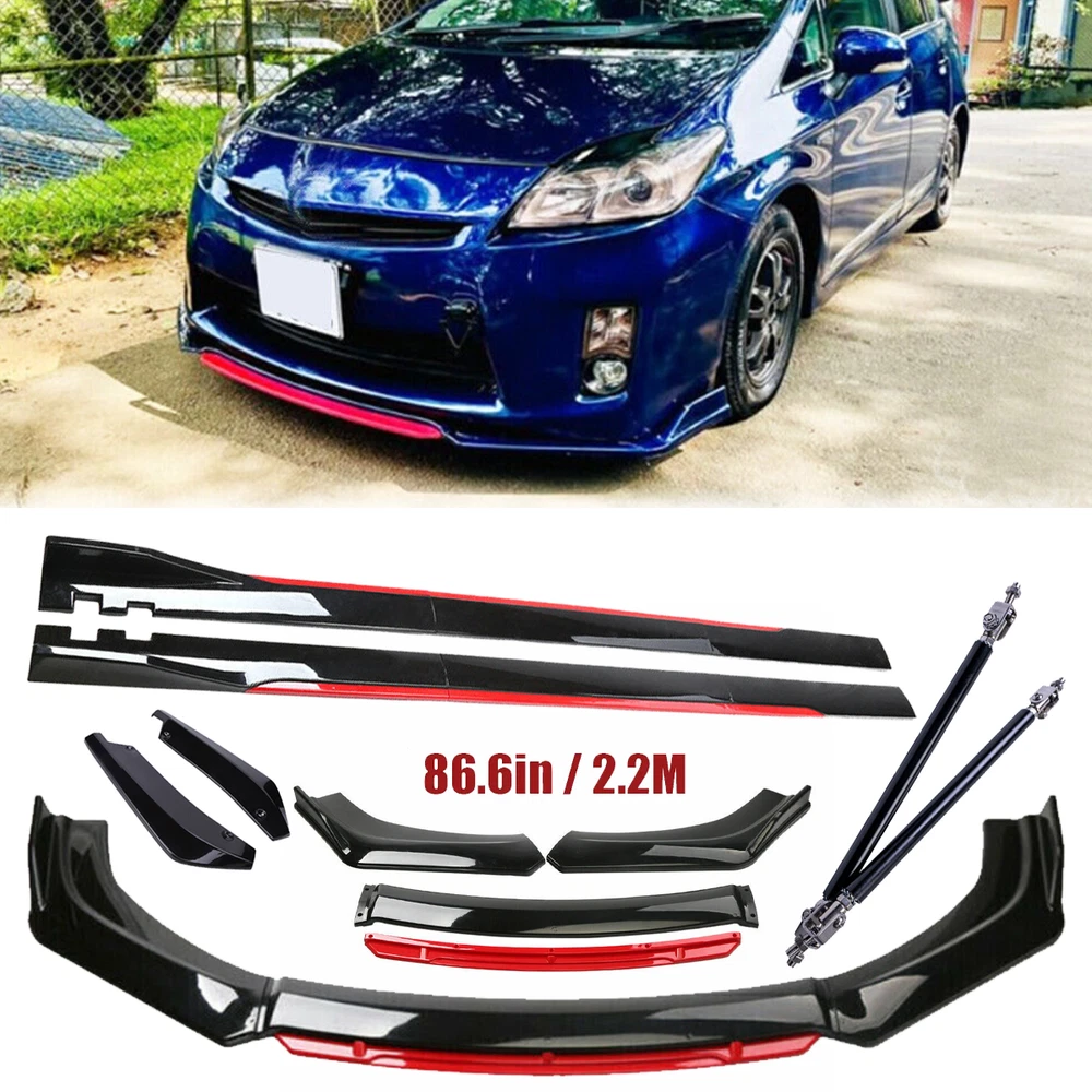 ackage 1. Front Bumper Lip Spoiler Splitter(5pcs) This front bumper lip splitter is fit for most models with front bumper size around 1750mm~1950mm. Feature: -Direct Fit. -Easy install and durable use. -Great quality and great Fitment. -Correct Connector No cutting or splicing. -Strict quality control standards to Build and test. -It'll give you a sporty look without making it too aggressive. -Light in weight and enduring, different optical line comes from different points of view. *Instruction Not Included, Professional Installation Is Highly Recommended.* Specification: -Type:Front Lip Chin Bumper Body Kit -Material:ABS -Color: Glossy Black +Red (as pictures show) -Placement on Vehicle:Front;;Lower -Fitment Type:Performance/Custom This front bumper lip body kit is suitable for most small cars and simple. And the flanks on both sides can be adjusted to make it more suitable for the width of the front of your car. Package 2. 2 x 86.6" Side Skirt Extension ( 6pcs ) Specification: Condition: 100% Brand New and High Quality Type: Car Body Side Skirts Material: Made of high quality PP plastic, Durable Color: Glossy Black +Red (as pictures show) Side Skirt Length: 86.6in / 2.2M Position: Side Skirt Extension Features: Universal modified side skirt for car sedan. While the side skirts don't affect the front ground clearance too much, it enhances the side extension of the in a very pure and exciting way. A Perfect Aftermarket Replacement. Professional Installation Is Highly Recommended. Package Included 3 Rear Lip Specification: Condition: 100% Brand New and High Quality Type: Car Body Rear Lip Material: Made of high quality PP plastic, Durable Color: Glossy Black (as pictures show) Surface Finish: Glossy Black Style Rear Lip Size:48cm/19“ Placement on Vehicle: Left, Right Package Included 4 2pcs Splitter Rods Material: premium quality aluminum alloy The length can be adjustable from 8" to 11" Fitment: Universal Note: Require drilling holes into the bumper lip diffuser to attach safely to the vehicle. Package Includes: 4 pcs /set Front Lip Chin Bumper Body Kits 2 x Side Skirts 2 x Rear Lip 2 X Splitter Strut Rods 1 x Screws kit Note: Installation instruction is not included, professional installation is recommended. Please allow 1-3CM differs due to manual measurement.