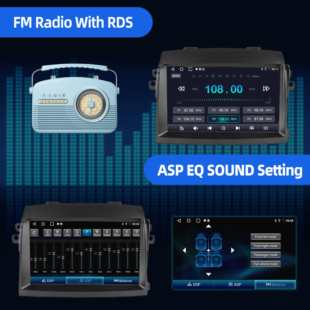 Description Features: 9 Inch Android 13 Car Radio For Toyota Sienna 2004-2010 : The Android car radio with 9" 1024*600 HD capacitive touch screen, 2GB RAM and 32GB ROM allows you to download your favorite apps and videos, so that driving will never be boring .No additional frame, no cable change, plug and play. MIRROR LINK & APPLE CARPLAY & ANDROID AUTO : With this car radio, you can experience the amazing Mirror Link function, compatible with iOS and Android phones. You can mirror your smartphone screen to the car radio using apps like Google Maps, Spotify, Youtube, etc. Replace your cell phone with the car screen and turn your vehicle into a smart platform. Immerse yourself in a seamless and user-friendly infotainment experience with Apple CarPlay & Android Auto. Connect your iPhone to Apple CarPlay or your Android smartphone to Android Auto and securely access calls, texts, navigation, music and more. With intuitive operation via the touchscreen or voice control, you have all functions at your fingertips while you remain safely at the wheel. Use your favorite apps and stay connected at all times while keeping your eyes on the road. Turn your vehicle into an extended hub for your mobile devices and experience a new dimension in infotainment. Navigation System & WiFi : Support WiFi connection. After connecting the WiFi, you can download any APP from App Store, e.g. B. Youtube, Tik Tok, Spotify, etc. Car stereo with GPS, accurate positioning, stable signal, support using online or offline maps, no longer worry about getting lost when you are driving. Independent antenna ensures strong WiFi reception. RDS/FM Radio & Bluetooth & ASP Sound Setting : Supports Bluetooth 4.1, with built-in microphone so you can make hands-free calls while driving. Support access to phone book, music playback interface, etc. RDS supported. You can save 18 FM radio stations. Built-in ASP chip. Supports 32-band EQ setting, which can be adjusted according to your personal preference. Which is very similar to your original sound. 4 x 45W amplifier, surround sound and subwoofer output AHD Rear View Camera Input & Steering Wheel Control : After connecting to the rear view camera. The radio automatically displays the reversing image as soon as you engage reverse gear. Make your daily reversing safer. Support AHD camera. Support original car steering wheel control to make driving more convenient and safer Technical specifications: System: Android 13 Screen: HD capacitive touch screen CPU: 4x Cortex-A53 1.3GHZ Memory: 2GB (RAM) + 32GB (ROM) Radio band: FM Radio frequency: FM 87.5M-108M Radio Data System (RDS): RT, AF, TA provides all the FM channel information you need(europe only). Mosfet output stage: 4 x 45 watts for maximum power Bluetooth: 4.1 Audioformat: MP3, FLAC, APE, WMA, WAV, AAC, AMR Videoformat: AVI, ASF, MP4, MOV, MPGMPEG1 / 2/4, VOB, MKV, FLV, TS, WMV, RMVB, 3GP OSD Menu Language: English, German, French, Italian, Spanish, Portuguese, Russian, Turkish, Polish PLS Note: Vehicle compatibility may vary based on options, production dates, and installation. Please inquire before purchasing. Package List: 1 x 9" Android Car Radio 1 x Radio Frame 1 x GPS Antenna 2 x USB Cable 1 x Power Cable 1 x RCA Cable 1 x Instruction manual Detail Image Warranty Return policy Products with quality problem in 30 days can be returned and refund /replaced (Item in resalable condition) Products with quality problem in 1 year can be returned and repaired. (For more details, please read our warranty policy). Welcome back to our store Customers satisfaction is our top priority.