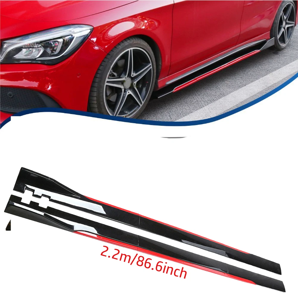 For Universal 86.6" Side Skirt Extension Lip Rocker Panel Red line Glossy Black