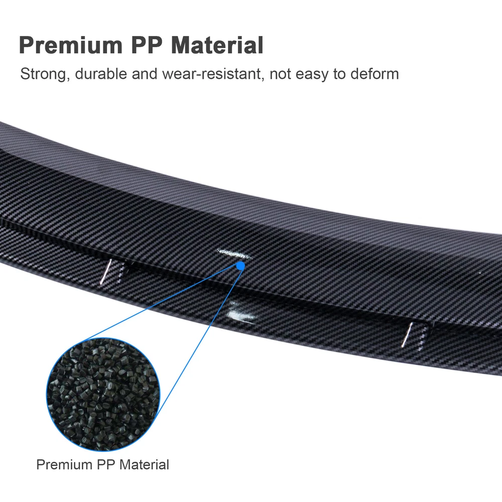 Other Part Number: Does Not Apply Warranty: 1 Year Custom Bundle: No Package Included: Front Bumper Lip + Side Skirt Splitter + Rear Lip Package Included 1:: 4 pcs Front Bumper Lip Body Kit Spoiler Modified Item: Yes Fitment Type: Performance/Custom Material: Polyurethane Attachment Method: Screws Feature: Adjustable Angle,Universal Fit Rear Lip Length: 19 in Manufacturer Part Number: Does Not Apply Number of Pieces: 12 Superseded Part Number: Chin-Diffuser-Front-Bumper-Splitter Mounting Hardware Included: Yes gtin13: Does not Apply Side Skirt Splitter Length: 78.7 in Color: Carbon Fiber Look Surface Finish: Glossy Black Interchange Part Number: Front Bumper Lip + Side Skirt Splitter + Rear Lip Type: Front Bumper Lip Body Kit Spoiler UPC: Does not Apply Bumper Lip Length: 76 in Package Included 3: Strud rods Country/Region of Manufacture: Unknown Brand: Unbranded Placement on Vehicle: Front, Left, Right, Rear, Lower Package Included 2: 2 pcs 2M/78.7" Side Skirt