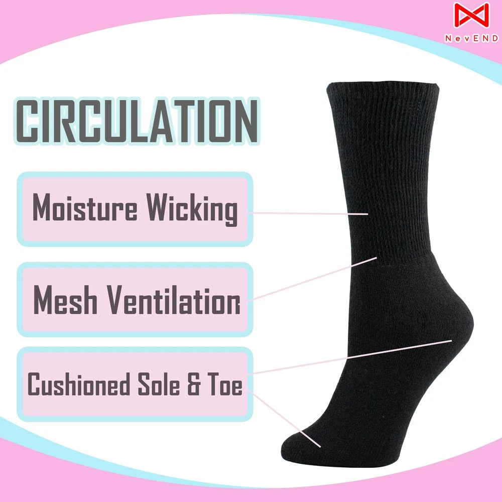 For Womens Non Binding Top Physician Approved Circulation Diabetic Crew Socks Product Specification: Color: Black, Grey, White Department: Women Material: 90% Cotton 7% Polyester 3% Elasthane Machine wash warm with like colors, tumble dry medium. Use only non-chlorine bleach when needed. Feature: Super Comfort: The diabetic socks made of 90% Cotton 7% Polyester 3% Elasthane, the material are breathable, soft and well-fitting, the USbingoshop socks are bound to meet all your demands. Perfect for Therapeutic: Physician Approved Therapeutic Highest Quality Socks,These top notch, non-binding socks feature a loose knit design that provides proper cushioning without squeezing or constricting your legs in any way. Excellent Blood Circulation: These must have diabetic socks are physician approved and highly recommended for people with diabetes, edema, and neuropathy caused by circulatory problems. These therapeutic, medical socks will allow your blood to flow unimpeded, helping you face all the conditions mentioned above. Shipping All orders will be shipped through USPS First Class and Priority Mails depends on the weight of the items. Shipping is complimentary within the lower 48 US States. All items ship within 1 business after payment is comfirmed For large items that require Freight shipping a valid phone number is required to call and schedule your delivery Returns All items qualify for returns within 14 days of receipt. Buyer pays return shipping. Please be sure this is an item you want before making your purchase. Customer Satisfaction is our TOP priority! All items are IN STOCK at time of listing. Returns are shipped at the customer's risk. We cannot take responsibility for items which are lost or damaged in transit. For purchases where a shipping charge was paid, there will be no refund of the original shipping charge. Communication & Feedback: Your 5-Star Positive Feedback helps us develop and improve our business and helps us lower our eBay fees. Please give us the Positive Feedback when the item arrives to your satisfaction. Our policy is to provide complete satisfaction with the product. We provide open, honest, prompt and clear communication with our buyers. If you have any concerns or are not completely satisfied, please contact us ASAP to allow us to resolve the issue in the best possible manner without opening a case via eBay and without negative feedback. We give positive feedback to all our buyers who pay promptly, generally as soon as we ship the item.