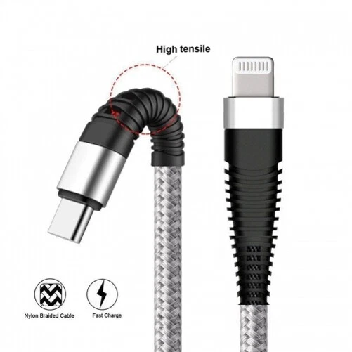 For iPhone 11 12 13 14 iPad 6ft PD Cable USB-C to iPhone Fast Charger Power Cord Description USB Type-C to (Iphone) Cable - 6 Feet (Approximately 2 Meters). Supports PD (Power Delivery) Charging. Delivers a high-speed charge up to 3A (max) with the USB-C PD charger, to charge an iPhone X from 0% to 50% in 30 mins. It offers data to sync up to 480Mbps, transfer music, movie, files between iPhone and USB-C laptops in seconds. The USB cable provides a USB Type-C connector at one end and iPhone connector on other end for quick and easy data transfers. Staying Power: Lasts 30× longer than ordinary cables. Proven in a laboratory environment to withstand 30000 bends. Double-Braided: Made with tough and durable two-shade nylon to be easily differentiated from your other cables. FEATURES Braided 6ft long usb-c cable. Double-braided: made with tough and durable two-shade nylon to be easily differentiated from your other cables. Power delivery: use together with an 18w or higher usb-c power delivery adapter (including apple 29w, 30w, 61w, or 87w usb-c power adapter) to charge your iphone to 50% in just 30 minutes. Supports fast charging for iphone, ipad and more. Total length is approximately 6 feet (2 meter). Note: it has type-c (usb-c) to (iphone) connectors. (pd charger adapter is not included. Cable only.) Staying power: lasts 30x longer than ordinary cables. Proven in a laboratory environment to withstand 30000 bends. Braided cables are made with highest quality components, including nitrogen-injected, skin-foam dielectric jackets, for higher conductivity, longer life, and superior signal transfer. Reversible design - easily insert the connectors into any type-c chargers/iphones (does not matter which side is up). Aluminum alloy connectors. Unique technology ensures the charging cable has good water resistance and the aluminum shells at both ends don't fall off. Compatibility: Please check and chose your device above. Payment We accept online payments through eBay only. Shipping We ship ALL in-stock orders within one business day after the payment is received. We do not ship on weekends or holidays. US and CANADA only. For other international locations please contact us to get a shipping quote. When your shipment is confirmed, you will receive a shipment confirmation e-mail. Domestic Orders: Items will be shipped via USPS First Class Mail or Parcel Post Transit time is approximately 2-7 business days. International Orders: Items will be shipped via USPS First Class International Mail, Transit time is approximately 7-25 business days. Returns Please use "Contact Seller" link in your account or click Contact us link to send us an email. Customers are responsible for determining their products compatibility with what we have for sale. We provide a general compatibility list, but please make sure that it will actually be compatible with your product. If purchasing a case, pouch, holster, clip please be aware that if you have an extended battery that it will most likely not fit. Pictures are for a general reference only. The item you get may differ from the one shown. The colors may be different as well as every computer displays colors differently. Feedback Your satisfaction is important to us. If you have questions regarding your order, or if you feel that you have a problem with your order, please contact us for a resolution before leaving feedback and we will resolve the issue to your satisfaction. We will automatically leave you a positive feedback once the payment is received. Thank you for your business.