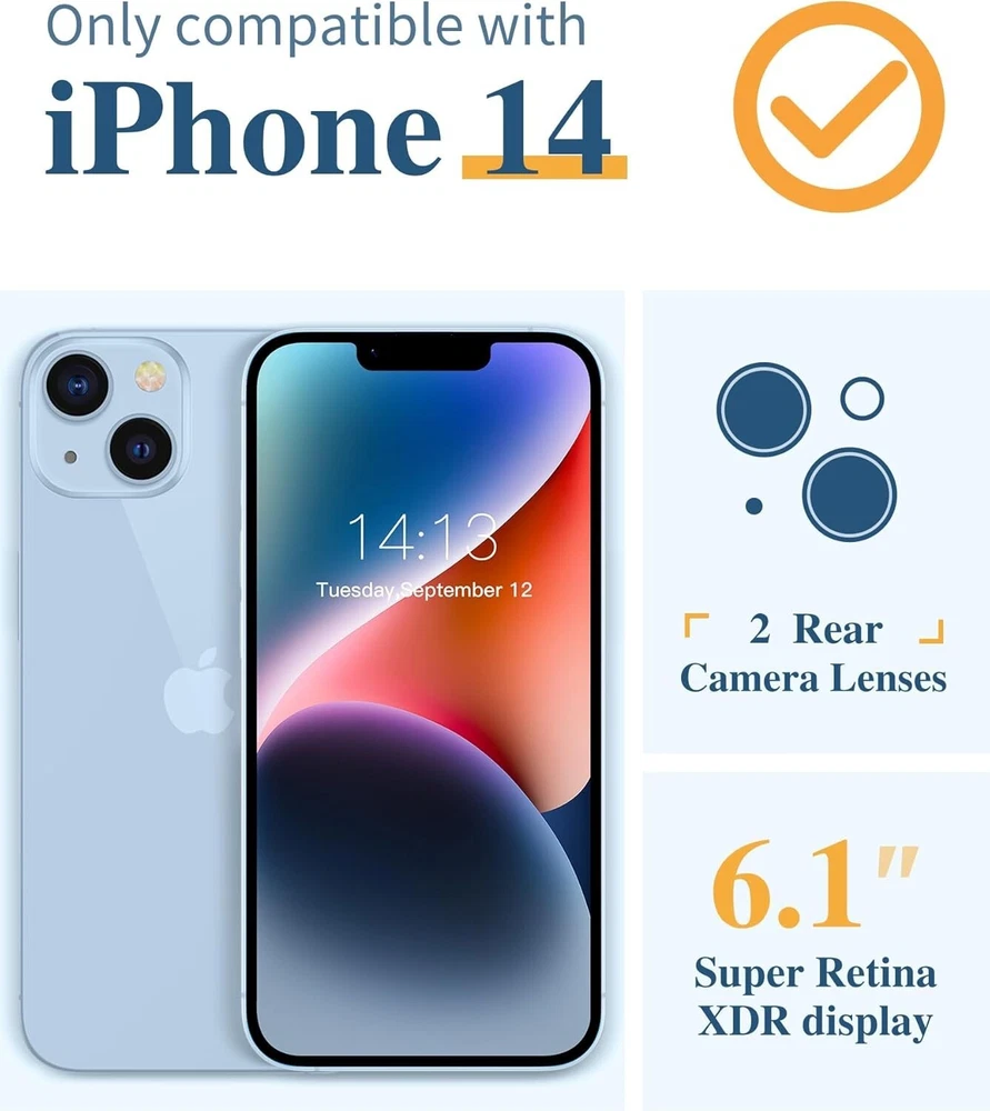 For iPhone 14 5G Case With Soft Shockproof Phone Cover & Camera Lens Protector [Compatibility] ONLY compatible with iPhone 14 6.1 inch (2022 Release). [Full Body Protection] Come with tempered glass screen protector and camera lens protector which can provide full body protection for your phone. Raised edges protect your phone screen and camera surface away damages from scratches and bumps in daily life. Corner bumper can absorb shock of drops up to 10FT. [Non-Yellowing & Chic Fashion] Made of impact-resistant and flexible durable TPU, ensures long lasting clarity, allows to retain phone's original look without losing your own personality. Made of a unique printing technique, these patterns won't rub off, fade or smudge. [Lightweight & Pocket Friendly] The slim phone case brings you greater portability and firmer grip without adding bulk. Precise cutouts ensure easy access to all buttons and ports with great tactile feeling. [Widely Compatible] This case compatible with iPhone 14 also supports wireless charging, car mounts and cell phone ring holders. Any purchases here are backed by quality assurance and 24/7 customer service. What's in the box: 1x Case With Camera Lens Cover & Screen Protector (Phone not included) USA SELLER!! BRAND NEW!! BEST QUALITY!! FAST DELIVERY VIA USPS!! GREAT FOR ANY OCCASIONAL GIFT TO YOUR FRIENDS, FAMILY, NEAR AND DEARS ONES!! Contact us Please give us the opportunity to resolve any problem before leaving any negative feedback or open any dispute. Please feel free to contact us on eBay's Internal Message System for any questions or concerns you may have. If you want to change shipping address or want a faster shipping etc., it's Better leave a note of under your order, so the system can hold on your order before we see your message, thanks. We will answer all your questions or concerns ASAP. Feedback We will make every effort to make your shopping the most pleasant and wonderful! Please contact us before leaving a negative feedback, giving us a chance to resolve your problem. Customer Service If you have any problems, we are very glad to help you. Please message us directly through eBay for faster response. Your inquiry is important to us and we'll respond within 24 Hr. SHIPS FROM U.S!!!!!!!!RECEIVE IT FAST AND FREE!!!!!!! Your order will be shipped within 1 business days upon full payment received. [ Due to the different monitor and light effect, the actual color of the item might be slightly different from the color showed on the pictures. Thank you! ]