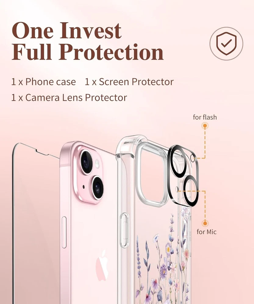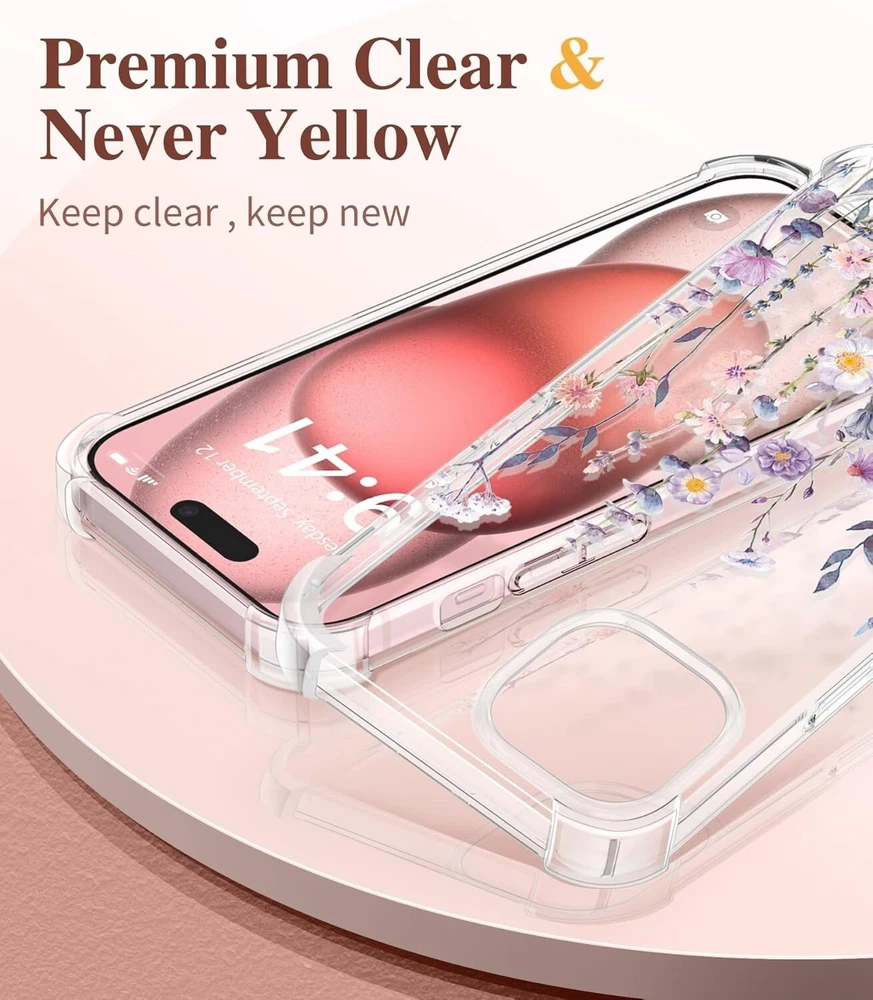 For iPhone 15 5G Case With Camera Lens Protector and Soft Shockproof Phone Cover [Compatibility] This case is ONLY compatible with iPhone 15 (6.1 inch, 2023 release), with precise cutouts for easy access to all buttons, speakers, and charging port. Please check the phone model before purchasing (Refer to image 2). [Crystal Clear & Chic Floral Patterns] The chic flower print brings your phone a uniquely stylish and eye-catching appearance, while the crystal clear case showcases the original beauty of your phone. The case is made with the most advanced stamping technique technology, so you don't have to worry about the pattern will fade over time. [3-in-1 360° Military-Grade Protection] Aiming at providing full body protection, it comes with 1 x High-Quality 9H tempered glass screen protectors and 1 x camera lens protectors. The Shockproof Corner Bumper endure drops of up to 10 feet (3m) and is certified to surpass Military Grade Drop Test standards. Raised Bezels lift the screen and camera off flat surfaces, effectively preventing the camera lenses and screen from breaking and scratching during everyday use. [Non-Yellowing & Comfortable Grip] The case made of ultra-clear and Soft TPU material is applied with nano anti-oxidation technology, which can effectively resist stains and sweat, and prevent the case from turning yellow over time.Lightweight TPU frame provides a slim feel and non-slip grip. [Trustworthy Service] This case also works with wireless charging, car mounts and cell phone ring holders. If any product issues, such as incompatible phone model, product not as expected, please contact us freely via Message Center. What's in the box: 1x Case With Screen Protector & Camera Lens Protector (Phone not included) "We are committed to your satisfaction. If you are not completely satisfied with our product, we offer a 100% money-back guarantee." USA SELLER!! BRAND NEW!! BEST QUALITY!! FAST DELIVERY VIA USPS!! GREAT FOR ANY OCCASIONAL GIFT TO YOUR FRIENDS, FAMILY, NEAR AND DEARS ONES!! Contact us Please give us the opportunity to resolve any problem before leaving any negative feedback or open any dispute. Please feel free to contact us on eBay's Internal Message System for any questions or concerns you may have. If you want to change shipping address or want a faster shipping etc., it's Better leave a note of under your order, so the system can hold on your order before we see your message, thanks. We will answer all your questions or concerns ASAP. Feedback We will make every effort to make your shopping the most pleasant and wonderful! Please contact us before leaving a negative feedback, giving us a chance to resolve your problem. Customer Service If you have any problems, we are very glad to help you. Please message us directly through eBay for faster response. Your inquiry is important to us and we'll respond within 24 Hr. SHIPS FROM U.S!!!!!!!!RECEIVE IT FAST AND FREE!!!!!!! Your order will be shipped within 1 business days upon full payment received. [ Due to the different monitor and light effect, the actual color of the item might be slightly different from the color showed on the pictures. Thank you! ]