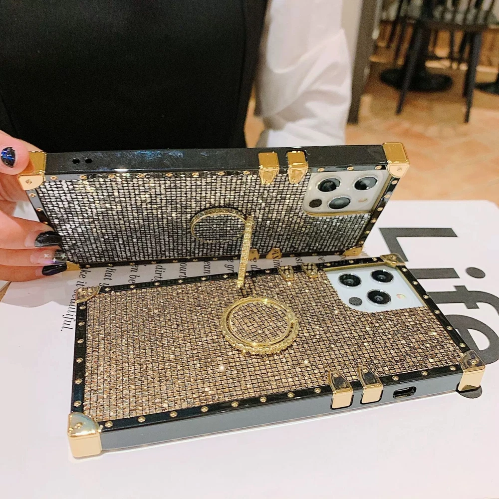 For iPhone 16 Pro Max 15 14 13 12 11 Bling Glitter Diamond Ring Stand Case Cover