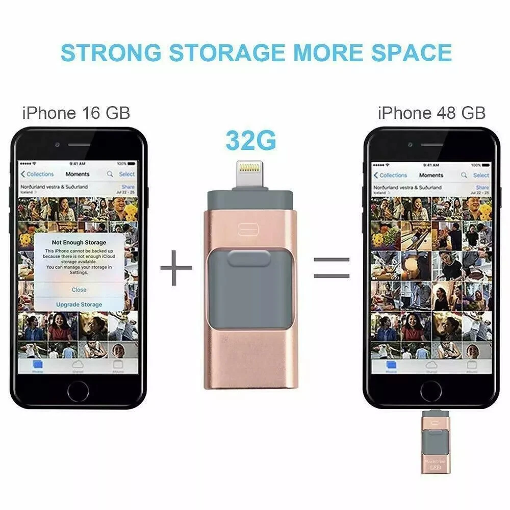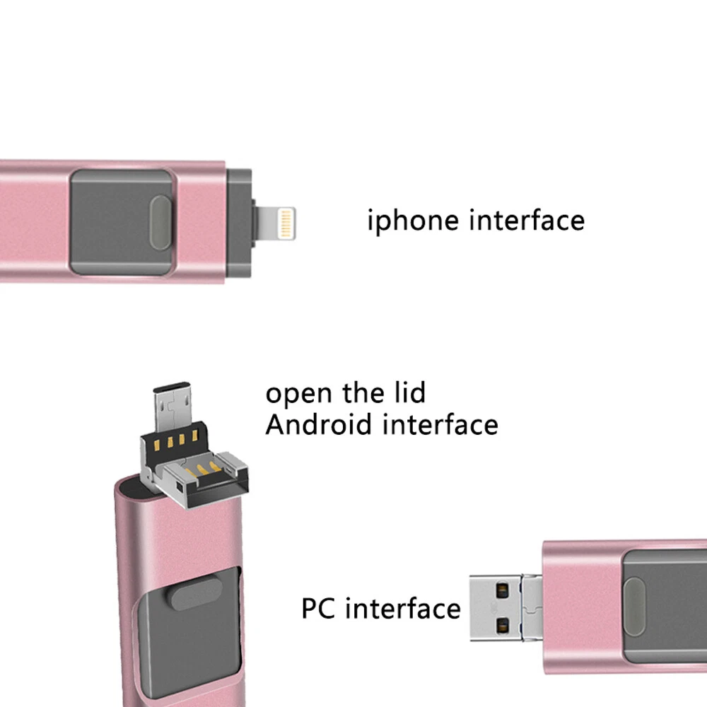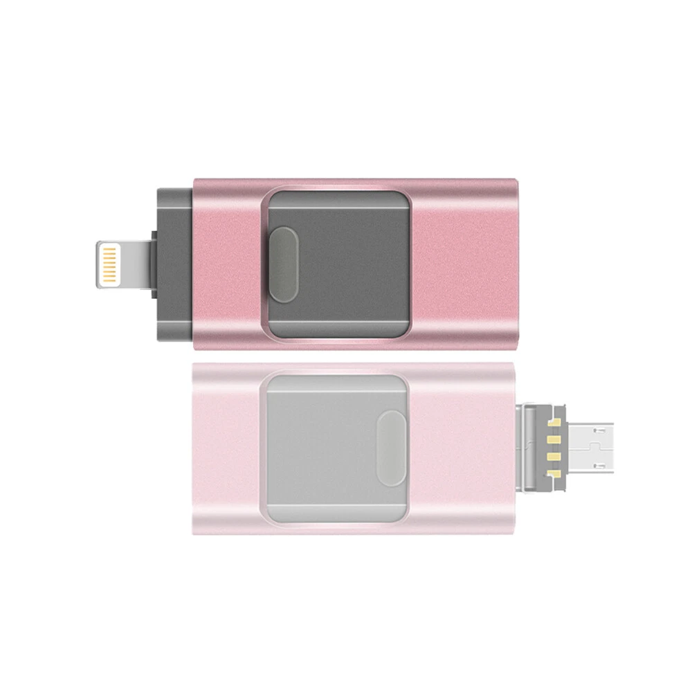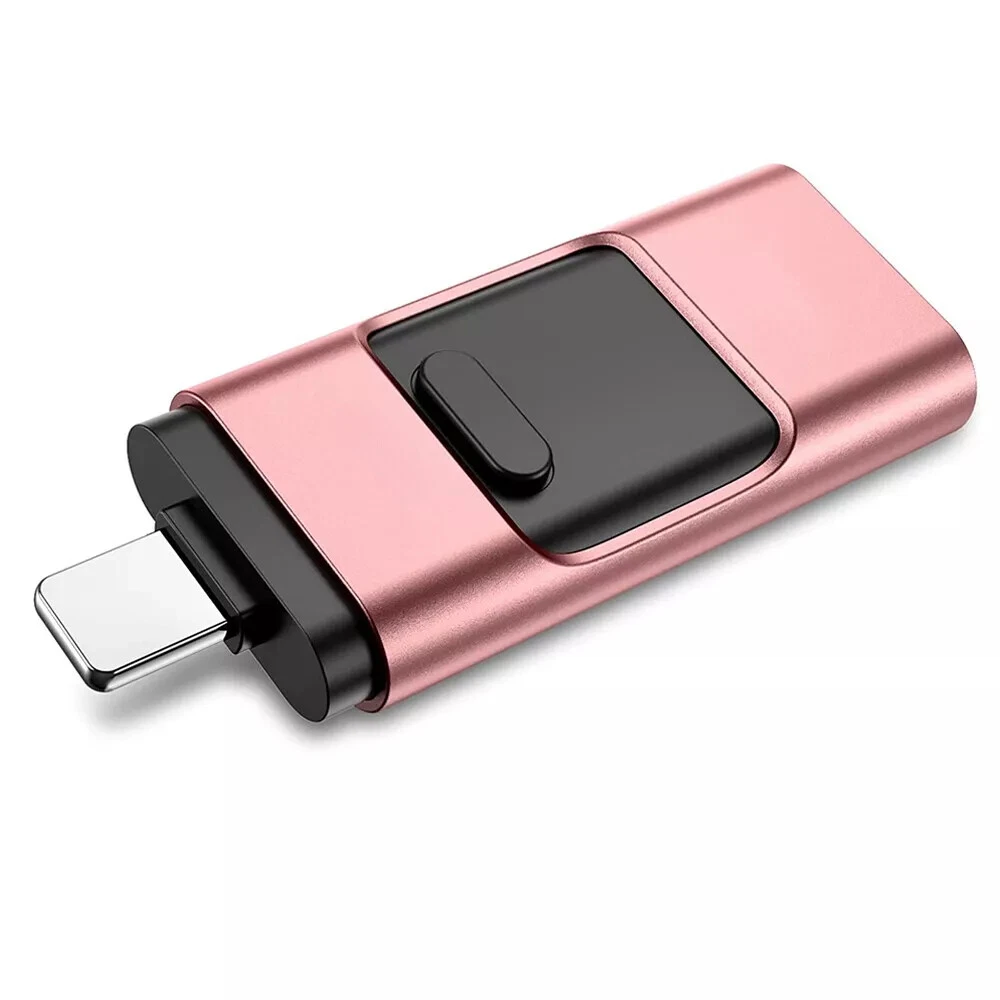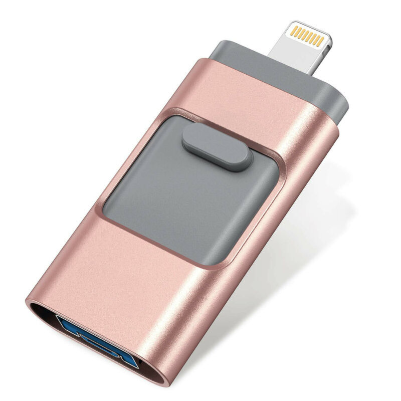 Product Description Product details 3-in-1 USB flash drive-This USB flash drive features a connector for iPhone and a standard USB A connector for computer, total 3 USB connectors available for use in different devices. Wide Compatibility-The pen drive is compatible with your iPhone, iPad, OTG Android phone or tablet, laptop, PC, Mac computer, freely transferring data among multiple systems and devices and making your work more efficient. Suppose to Windows 2000/XP/Vista/7/8/10, iOS, Mac OS v10.4/Linux v2.4/Android 4.0 or later Windows Privacy Protected-The first time you use it on your iPhone, you need to download and install the free Y- Disk app which features data encryption function to protect your privacy. Reliable & Durable-Grade- flash always keeps your data safe and push-pull design enables the end that is not in use hidden into the aluminum alloy cover to avoid damage. This jump drive is water-resistant and dustproof to withstand daily wear and tear, as well as shockproof to survive accidental drops. High Speed Transfer-Both Type-A connectors optimize USB 3.0 performance to speed up to 90Mb/s(read),30Mb/s(write) , allowing you to move and back up your full HD/4K movies, digital music, and high-resolution photos quick and fast. Specif ication Material: aluminum alloy + plastic Capacity: 256G,1TB,2TB Color: Rose Gold Weight:25g USB Type: Type-A, Lightining Package inc luded 1 x USB flash drive 1 x user manual