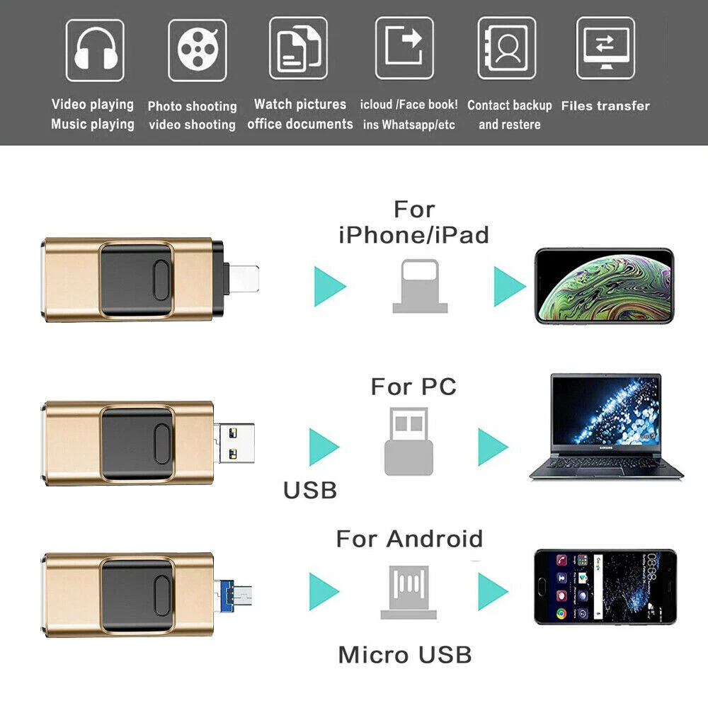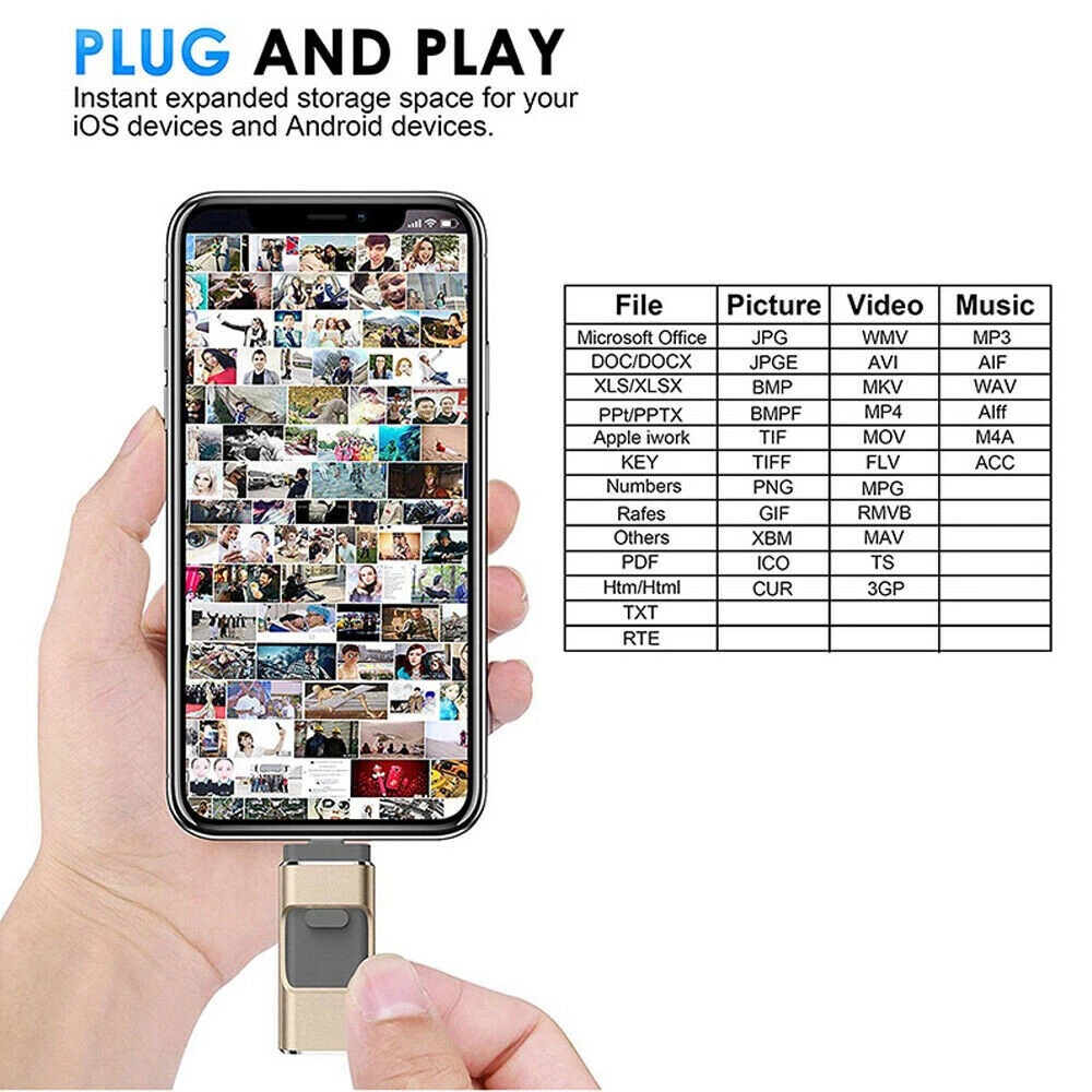Description: - The newly designed mobile phone USB flash drive with built-in smart IC supports self-identification and upgrade to ensure long-term stable operation. - USB 3.0 and iphone 8-PIN dual interface, support plug and play. - Compatible with new models such as iPhone, iPad, and iPod. - It supports most file formats and can be transferred freely between iPhone/iPad and PC. - Stream music, play music directly, without taking up any space on your iPhone/iPad. - Play programs independently, and support desktop background music playback. - Separately connect to the PC and become an ordinary U disk. Package Included: 1 X Flash Drive for iPhone/iPad Feature: 1. Recording IOS itself system cannot be directly removed the tape with each other, Only can transfer out by Email, Now you can put the data transfer out without network as long as using the recording function of iflashdrive. 2. Mobile office (you can copy, delete, move and edit supporting files, etc.) Apple IOS system software can quickly modify the file flash disk, which can be transferred out via Email or 3G at any time. Make your office faster and more portable. Supports PDF, Word, Excel, PPT, HTM, Html, etc. 3. One-click contact backup IOS system cannot back up the directory, or even delete the backup directory without a computer network, but ilashdrive can achieve simple backup and recovery operations without the need for a network. 4. Take photos/videos on the flash drive. You can take photos and videos with your iphone and store them in a flash drive. 5. Copy photos from the album. You can copy photos to "external storage" (flash drive) or "local storage" (iPhone). 6 . Play video/music. Can play video/music on flash drive. Video support: Mp4, Mobile, RM, RMVB, M4V, FLV, WMV, AVI. Music support: Mp3, AIF, WAV, AAC, WMA, etc. Description: - The newly designed mobile phone USB flash drive with built-in smart IC supports self-identification and upgrade to ensure long-term stable operation. - USB 3.0 and iphone 8-PIN dual interface, support plug and play. - Compatible with new models such as iPhone, iPad, and iPod. - It supports most file formats and can be transferred freely between iPhone/iPad and PC. - Stream music, play music directly, without taking up any space on your iPhone/iPad. - Play programs independently, and support desktop background music playback. - Separately connect to the PC and become an ordinary U disk. Compatible with the following models: For iPhone X / XR / XS / XS Max / 8/8 Plus / 7/7 Plus / 6 / 6s / 6 Plus / 6s Plus / 5 / 5S / 5C /iPad Air/ Air2 / iPad 4 / iPad mini / iPad mini 2 3 4 / iPad Pro / iPod touch 5 IOS8 or above, Windows XP, Windows 7, Windows 8, Windows 10, Window OSX, Linux.Mac. System requirements: download a free mapping program from the App Store Note: Android Type C is not supported Package Included: 1 X Flash Drive for iPhone/iPad ❣Due to the influence of light, screen, monitor, angle and other factors when the picture is taken, there may be slight chromatic aberration, please understand!