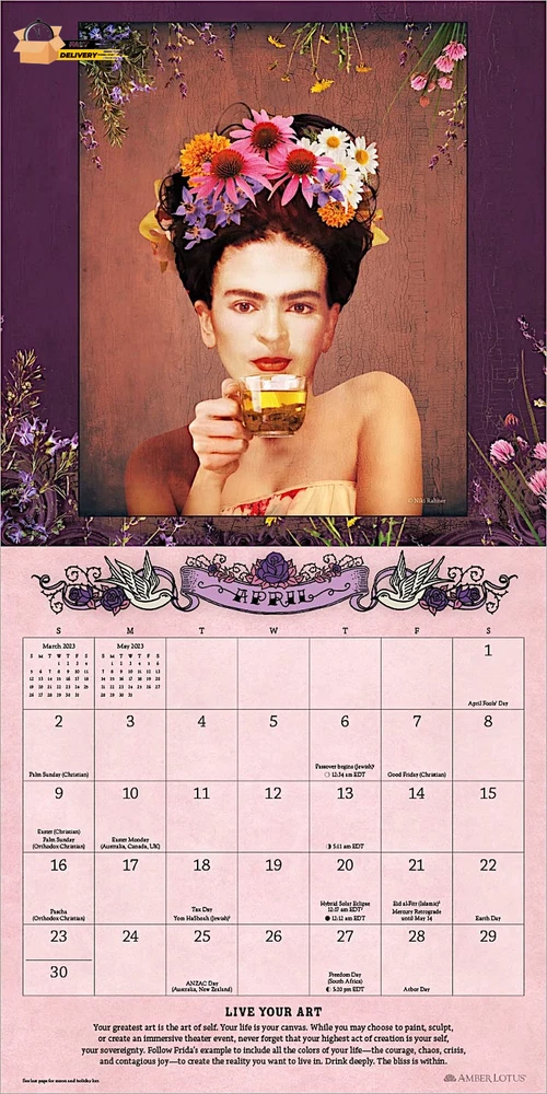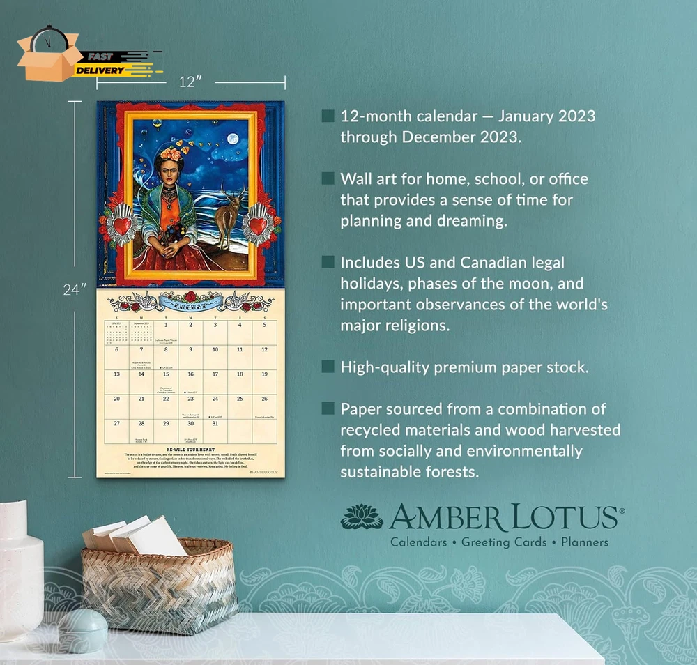 Store New Arrivals Add to Favorite View Feedback Contact For the Love of Frida 2023 Wall Calendar: Art and Words Inspired by Frida Kahlo Description Publisher Amber Lotus Publishing; First Edition (July 1, 2022) Dimensions 12.01 x 0.31 x 12.01 inches Language English Item Weight 0.071 ounces ISBN-10 1631368729 ISBN-13 978-1631368721 Calendar 28 pages Frida Kahlo — feminist, visionary, provocateur, revolutionary — is an icon synonymous with creativity, originality, and empowerment. This bewitching wall calendar will inspire you to explore your inner Frida, ignite your creative fire, shake loose your fears, and boldly color the canvas of your life. Beguiling portraits of this groundbreaking folk artist by twelve contemporary artists are paired with the thoughts and musings of writer and life-artist Angi Sullins. Together they channel Frida's indomitable spirit and will keep you entranced throughout the year — for the love of Frida! 12" x 12" wall calendar (12" x 24" open). 12-month calendar from January 2023 through December 2023. An eclectic collection of portraits of Frida Kahlo by artists such as Silas Toball, Sophie Wilkins, and Arnaud Bauville. The perfect gift for artists, folk art enthusiasts, and fans of Frida Kahlo. A year of bewitching portraits of Frida Kahlo on your wall. With enchanting text by writer and life-artist Angi Sullins of Duirwaigh Studios. Be organized and inspired throughout the year. Wall art for home, school, or office that provides a sense of time for planning and dreaming. This wall calendar includes US and Canadian legal holidays, phases of the moon, and important observances of the world's major religions. High-quality printing on premium paper stock. Printed on paper sourced from a combination of recycled materials and wood harvested from socially and environmentally sustainable forests. The paper is Forest Stewardship Council ® (FSC ® ) certified — FSC-N003833. WE PLANT TREES to offset our carbon footprint and resource usage — more than ONE MILLION and growing! Amber Lotus Publishing, an independent carbon-negative US company, has planted 1,151,000 trees since 2008. Each year we plant more than 20 times the number of trees used to create our products. ABOUT US We offer the best prices around on high quality products. Our E-store includes media such as books, movies, music and games while offering electronics, toys, sporting apparel, clothing, tools, general home, garden items and more. SHIPPING We are always working hard to ensure your package arrives as soon as possible. Please understand that some factors like weather, high postal traffic, and the performance of shipping companies are outside of our control. We offer free shipping to the lower 48 states and ship within 2 business days of payment, usually sooner. We do not accept P.O. Boxes. Please provide a physical address. For shipping outside of the continental USA, we only use eBay's Global Shipping Program.The item is shipped to KY and then sent to the rest of the world. International customers are responsible for all duties and taxes. Continue to check out in order to calculate costs for shipping the item to your country. Messages regarding eBay's Global Shipping Program MUST be directed at eBay EXCLUSIVELY. RETURNS We offer a 30-Day Return Policy on items which you are not completely satisfied with. You have the option for a full-refund or an exchange of the item. No returns are available on items shipped outside of the USA. PAYMENT We accept PayPal. CONTACT US This page content is yet to come Please ad us to your favorite seller and visit again later Thank You CUSTOMER SATISFACTION We try our very best to make sure every customer is completely satisfied. If there's a problem, message us! We're happy to help. WE ACCEPT Copyright © 2021 AutoDS. | All Rights Reserved