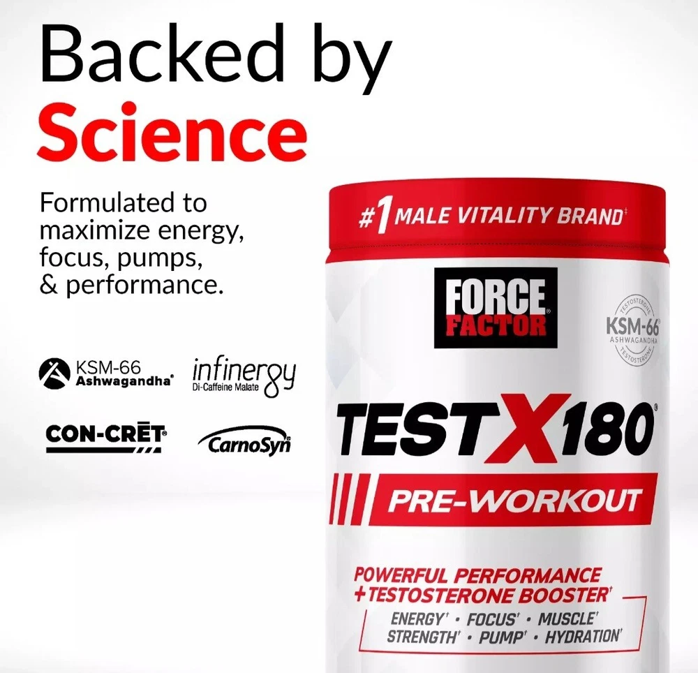 Force Factor Test X180 Pre-Workout, Pre Workout Powder and Testosterone Booster. Shipping is $6.99! We ship all items with the utmost care.
