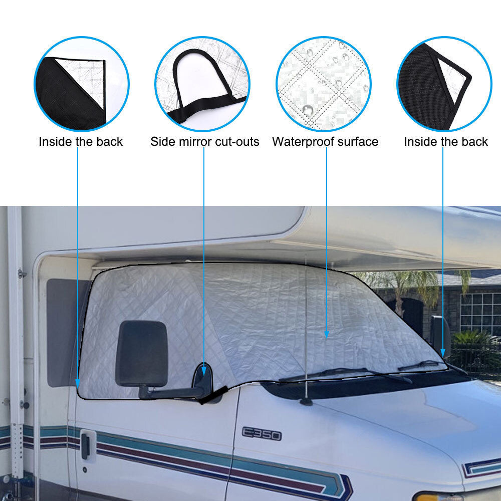 For Ford Class C 1997-2024 RV Windshield Cover Protector Winter Snow Sun Shade Fitment: For Ford Class C 1997-2024 Models RV (Please check the car model and size before buying) Specification: Material: PEVA Aluminized Film + Cotton + Polyester Color: Silver Grey(Front) + Black(Back) Size: 207cm/79.9" x 89.5cm/35.2" Feature: Winter and Summer Protective Shield: RV windshield cover can work in the winter, it will provide you better protection from snow. It can effectively protect your RV from harmful UV rays, snow, ice, frost, dust, and dirt Protect Your Privacy : Our RV sunshade cover can completely cover the front windshield and side door glass, providing you with complete privacy. And with an anti-theft design-as long as the door is locked, it cannot be opened from the outside Excellent 4 Layers Material : The snow windshield cover for RV comprises 4 layers of high-density materials. Aluminum Foil+PE Film material is not only water-resistant but also good at sunproofing, cooling down, and anti-UV Package Include: 1 * Snow Cover Payment We can accept payment of Paypal only. Payment should be made within 7 days after purchasing. (No payment orders eBay system will automatically open unpaid dispute, and this is not good to your account.) Shipping Item will be shipped out within 48 hours upon receipt of your cleared payment. We can not ship on Sundays and other public holidays. International Buyers Please Note: 1, Import duties, taxes and charges are not included in the item price or shipping charges. These charges are the buyer's responsibility. 2, Please check with your countrys customs office to determine what these additional costs will be prior to bidding/buying. Please make sure your address in paypal is correct. we will only follow your address listed in the Paypal payment for the shipment. Combine shipment is not allowed. If you want to combine all the items together, you should still pay for all of the shipping, insurance and handling fee! Returns We offer you 30 days return. The buyer is responsible for return shipping including a result of customer error or wrong item bought: 1) If you received an incorrect, damaged, defective, or item not as described, contact us for a partial/full refund or replacement on our cost. 2) If you want to return the item, please contact us within 60 days after package received. Return products must also be in its original condition: including box, packaging and all other accessories. Feedback 1.We are appreciated your business and to improve our customer service and our commitment to quality. 2.We will leave a positive feedback immediately after payment is received. We appreciate a positive feedback as much as you do. 3.If for some reason there is any issue with the purchase, please contact us prior to leaving feedback, and we will be glad to work with you to have it resolved. Contact Us We do appreciate your purchase from our store. If you are satisfied with the item as well as our service, please kindly leave us a Positive Feedback to help develop our business. Thank you in advance. Our office hours are MONDAY - FRIDAY 9:00PM - 18:00PM PST , we do not answer any E-mails or eBay messages on weekend. All E-mail or eBay message take us around 24 hours to respond. Thanks a lot. For Ford Class C 1997-2024 RV Windshield Cover Protector Winter Snow Sun Shade Fitment: For Ford Class C 1997-2024 Models RV (Please check the car model and size before buying) Specification: Material: PEVA Aluminized Film + Cotton + Polyester Color: Silver Grey(Front) + Black(Back) Size: 207cm/79.9" x 89.5cm/35.2" Feature: Winter and Summer Protective Shield: RV windshield cover can work in the winter, it will provide you better protection from snow. It can effectively protect your RV from harmful UV rays, snow, ice, frost, dust, and dirt Protect Your Privacy : Our RV sunshade cover can completely cover the front windshield and side door glass, providing you with complete privacy. And with an anti-theft design-as long as the door is locked, it cannot be opened from the outside Excellent 4 Layers Material : The snow windshield cover for RV comprises 4 layers of high-density materials. Aluminum Foil+PE Film material is not only water-resistant but also good at sunproofing, cooling down, and anti-UV Package Include: 1 * Snow Cover On Feb 21, 2025 at 22:36:38 PST, seller added the following information: